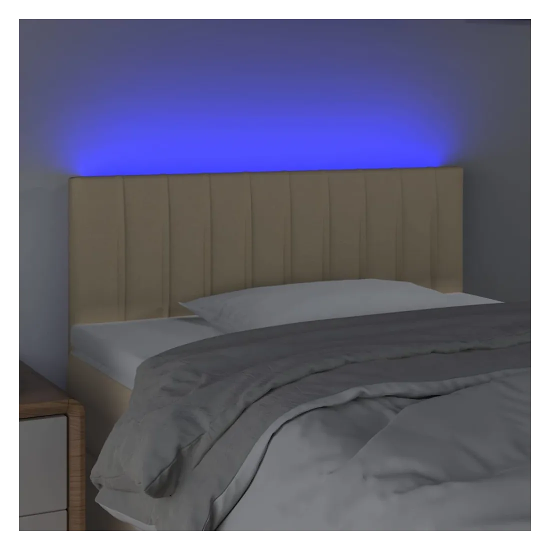 Cette tête de lit à LED classique, au design élégant, donne à votre cadre de lit une touche de modernité étonnante et convient parfaitement à toute chambre à coucher. Tissu durable : le tissu présente un aspect simple et épuré, et il est respirant et durable. LED colorée : apportez de l'éclairage dans l'obscurité avec des lumières LED colorées ! Hauteur réglable : la tête de lit est réglable en hauteur selon vos préférences. Excellent soutien : la tête de lit vous offre un excellent soutien du dos lorsque vous êtes assis dans votre lit pour lire ou regarder la télévision. Bande à LED découpable : cette bande à LED flexible peut être ajustée en longueur. Le symbole des ciseaux indique où la bande peut être coupée en toute sécurité sans l'endommager. Remarque : Seule la partie avec un sy