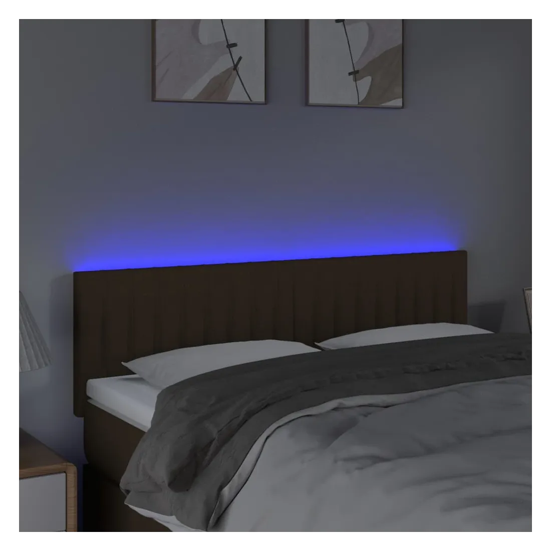 Cette tête de lit à LED classique, au design élégant, donne à votre cadre de lit une touche de modernité étonnante et convient parfaitement à toute chambre à coucher. Tissu durable : le tissu présente un aspect simple et épuré, et il est respirant et durable.LED colorée : apportez de l'éclairage dans l'obscurité avec des lumières LED colorées !Hauteur réglable : la tête de lit est réglable en hauteur selon vos préférences.Excellent soutien : la tête de lit vous offre un excellent soutien du dos lorsque vous êtes assis dans votre lit pour lire ou regarder la télévision.Bande à LED découpable : cette bande à LED flexible peut être ajustée en longueur. Le symbole des ciseaux indique où la bande peut être coupée en toute sécurité sans l'endommager. Remarque :Seule la partie avec un symbole de ciseaux peut être coupée et seule la partie avec l'USB continuera à fonctionner comme avant.Chaque produit est livré avec un manuel de montage dans la boîte pour un montage facile.Ce produit est doté d'un connecteur USB, mais la source d'alimentation certifiée de USB 5V n'est pas incluse.