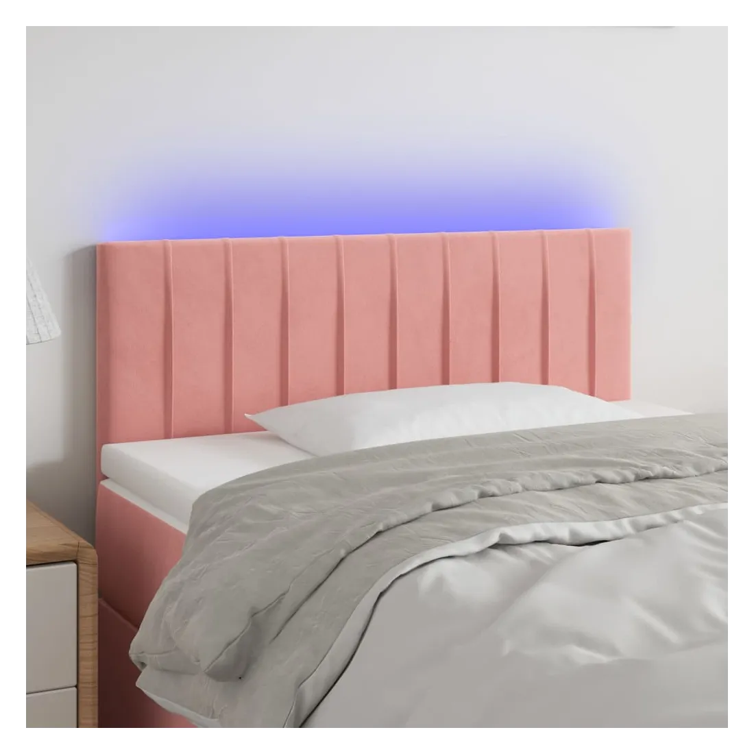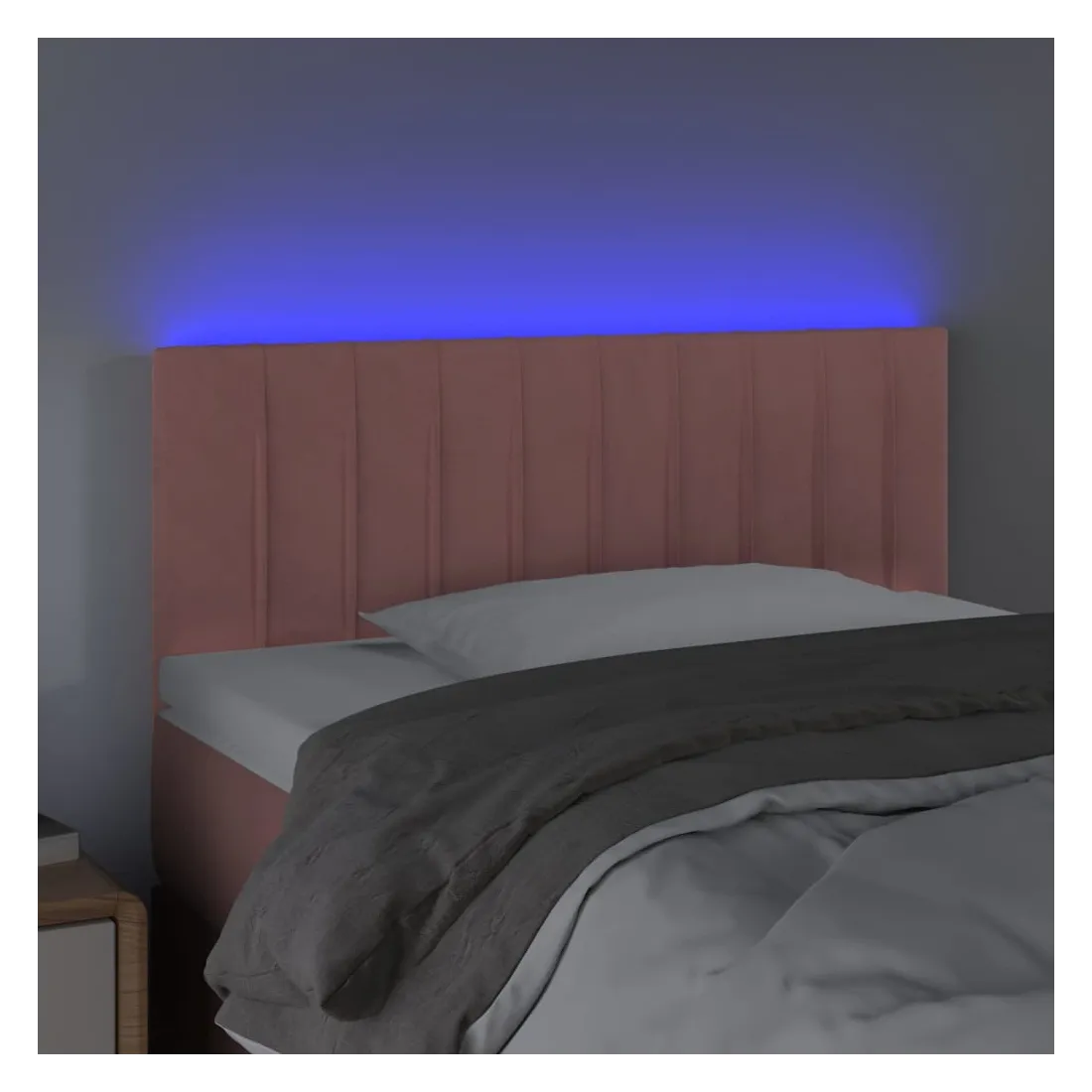 Cette tête de lit à LED classique, au design élégant, donne à votre cadre de lit une touche de modernité étonnante et convient parfaitement à toute chambre à coucher. Velours doux : le velours est un tissu doux et luxueux qui se reconnaît à son tas dense de fibres uniformément coupées qui ont une touche lisse. Le tissu en velours présente un toucher doux distinctif, ce qui le rend confortable au toucher.LED colorée : apportez de l'éclairage dans l'obscurité avec des lumières LED colorées !Hauteur réglable : la tête de lit est réglable en hauteur selon vos préférences.Excellent soutien : la tête de lit vous offre un excellent soutien du dos lorsque vous êtes assis dans votre lit pour lire ou regarder la télévision.Bande à LED découpable : cette bande à LED flexible peut être ajustée en longueur. Le symbole des ciseaux indique où la bande peut être coupée en toute sécurité sans l'endommager. Remarque :Seule la partie avec un symbole de ciseaux peut être coupée et seule la partie avec l'USB continuera à fonctionner comme avant.Chaque produit est livré avec un manuel de montage dans la boîte pour un montage facile.Ce produit est doté d'un connecteur USB, mais la source d'alimentation certifiée de USB 5V n'est pas incluse.