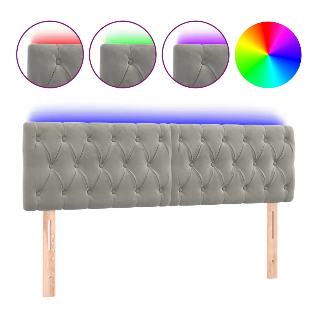 Tête de lit à LED Gris clair 160x7x78/88 cm Velours