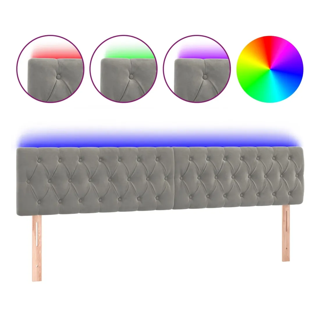 Cette tête de lit à LED classique, au design élégant, donne à votre cadre de lit une touche de modernité étonnante et convient parfaitement à toute chambre à coucher. Velours doux : le velours est un tissu doux et luxueux qui se reconnaît à son tas dense de fibres uniformément coupées qui ont une touche lisse. Le tissu en velours présente un toucher doux distinctif, ce qui le rend confortable au toucher.LED colorée : apportez de l'éclairage dans l'obscurité avec des lumières LED colorées !Hauteur réglable : la tête de lit est réglable en hauteur selon vos préférences.Excellent soutien : la tête de lit vous offre un excellent soutien du dos lorsque vous êtes assis dans votre lit pour lire ou regarder la télévision.Bande à LED découpable : cette bande à LED flexible peut être ajustée en longueur. Le symbole des ciseaux indique où la bande peut être coupée en toute sécurité sans l'endommager. Remarque :Seule la partie avec un symbole de ciseaux peut être coupée et seule la partie avec l'USB continuera à fonctionner comme avant.Chaque produit est livré avec un manuel de montage dans la boîte pour un montage facile.Ce produit est doté d'un connecteur USB, mais la source d'alimentation certifiée de USB 5V n'est pas incluse.