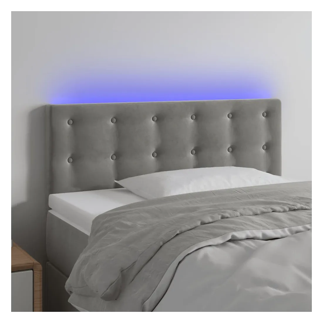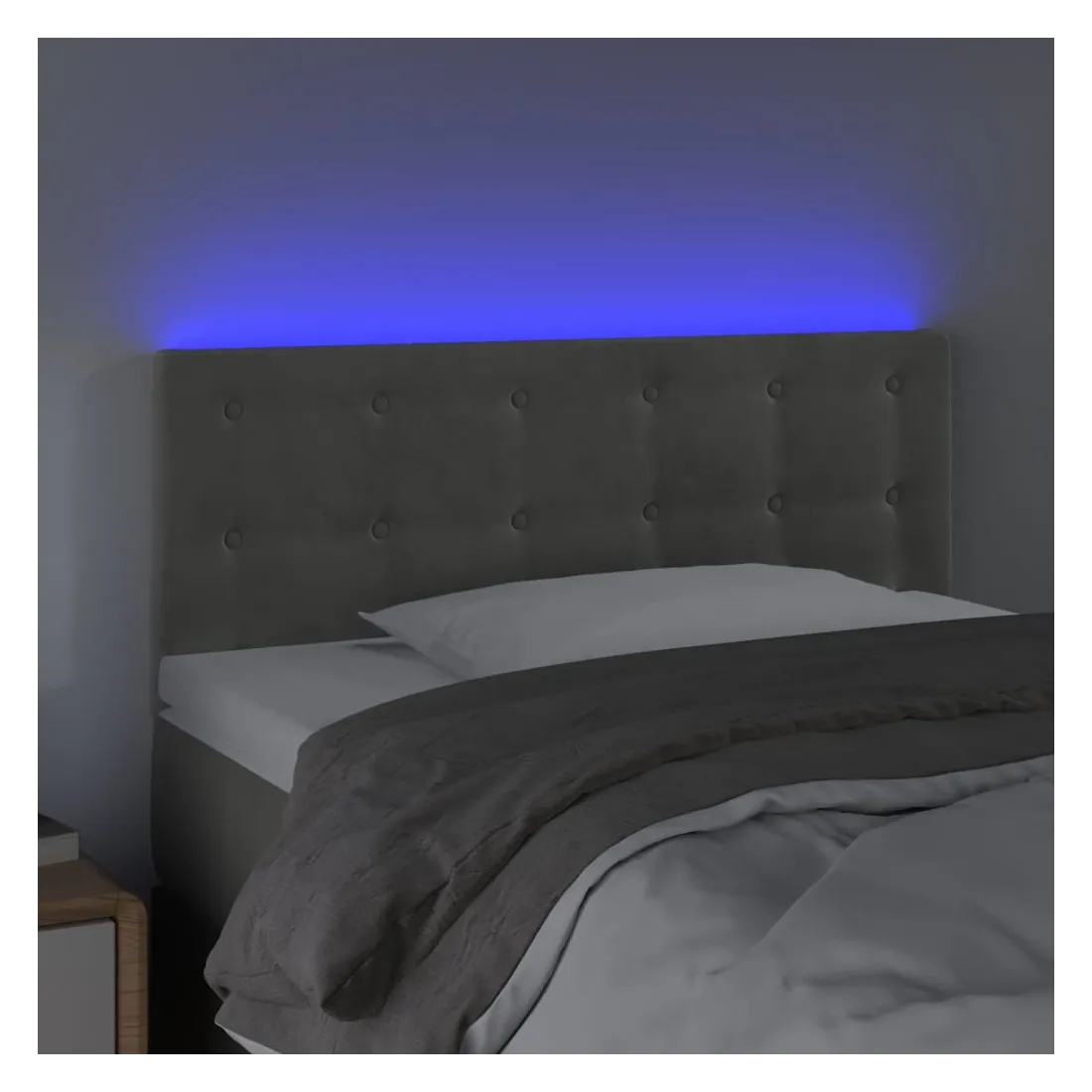 Cette tête de lit à LED classique, au design élégant, donne à votre cadre de lit une touche de modernité étonnante et convient parfaitement à toute chambre à coucher. Velours doux : le velours est un tissu doux et luxueux qui se reconnaît à son tas dense de fibres uniformément coupées qui ont une touche lisse. Le tissu en velours présente un toucher doux distinctif, ce qui le rend confortable au toucher.LED colorée : apportez de l'éclairage dans l'obscurité avec des lumières LED colorées !Hauteur réglable : la tête de lit est réglable en hauteur selon vos préférences.Excellent soutien : la tête de lit vous offre un excellent soutien du dos lorsque vous êtes assis dans votre lit pour lire ou regarder la télévision.Bande à LED découpable : cette bande à LED flexible peut être ajustée en longueur. Le symbole des ciseaux indique où la bande peut être coupée en toute sécurité sans l'endommager. Remarque :Seule la partie avec un symbole de ciseaux peut être coupée et seule la partie avec l'USB continuera à fonctionner comme avant.Chaque produit est livré avec un manuel de montage dans la boîte pour un montage facile.Ce produit est doté d'un connecteur USB, mais la source d'alimentation certifiée de USB 5V n'est pas incluse.