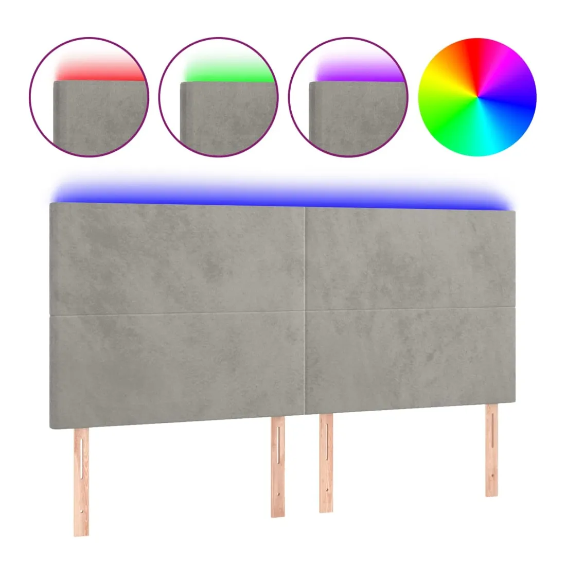 Tête de lit à LED Gris clair 160x5x118/128 cm Velours