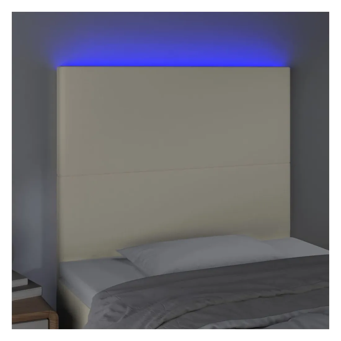 Cette tête de lit à LED classique, au design élégant, donne à votre cadre de lit une touche de modernité étonnante et convient parfaitement à toute chambre à coucher. Similicuir durable : le similicuir de qualité supérieure est un matériau très durable. Il est résistant aux taches, ce qui le rend facile à nettoyer avec un chiffon humide. La surface lisse donne également un aspect luxueux et la beauté du cuir véritable.LED colorée : apportez de l'éclairage dans l'obscurité avec des lumières LED colorées !Hauteur réglable : la tête de lit est réglable en hauteur selon vos préférences.Excellent soutien : la tête de lit vous offre un excellent soutien du dos lorsque vous êtes assis dans votre lit pour lire ou regarder la télévision.Bande à LED découpable : cette bande à LED flexible peut être ajustée en longueur. Le symbole des ciseaux indique où la bande peut être coupée en toute sécurité sans l'endommager. Remarque :Seule la partie avec un symbole de ciseaux peut être coupée et seule la partie avec l'USB continuera à fonctionner comme avant.Chaque produit est livré avec un manuel de montage dans la boîte pour un montage facile.Ce produit est doté d'un connecteur USB, mais la source d'alimentation certifiée de USB 5V n'est pas incluse.