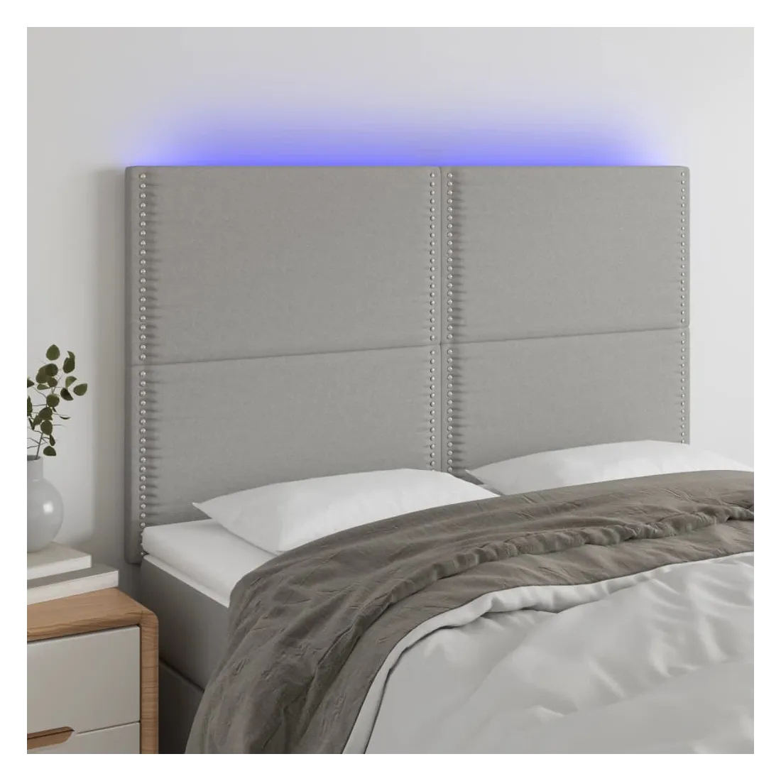 Tête de lit à LED Gris clair 144x5x118/128 cm Tissu