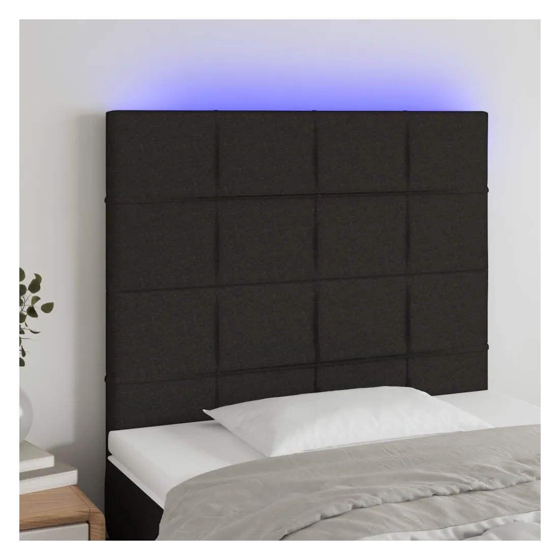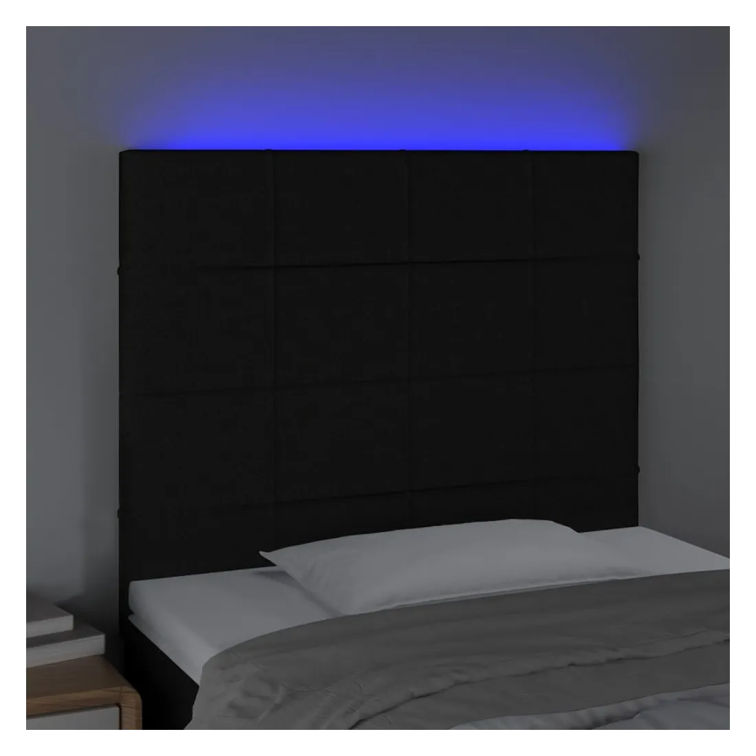 Cette tête de lit à LED classique, au design élégant, donne à votre cadre de lit une touche de modernité étonnante et convient parfaitement à toute chambre à coucher. Tissu durable : le tissu présente un aspect simple et épuré, et il est respirant et durable. LED colorée : apportez de l'éclairage dans l'obscurité avec des lumières LED colorées ! Hauteur réglable : la tête de lit est réglable en hauteur selon vos préférences. Excellent soutien : la tête de lit vous offre un excellent soutien du dos lorsque vous êtes assis dans votre lit pour lire ou regarder la télévision. Bande à LED découpable : cette bande à LED flexible peut être ajustée en longueur. Le symbole des ciseaux indique où la bande peut être coupée en toute sécurité sans l'endommager. Remarque : Seule la partie avec un sy