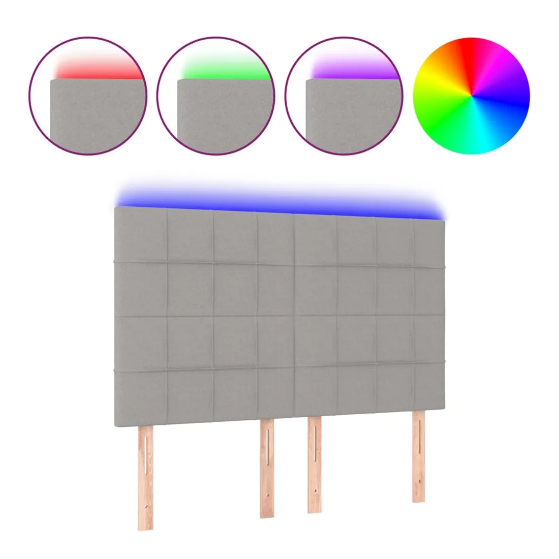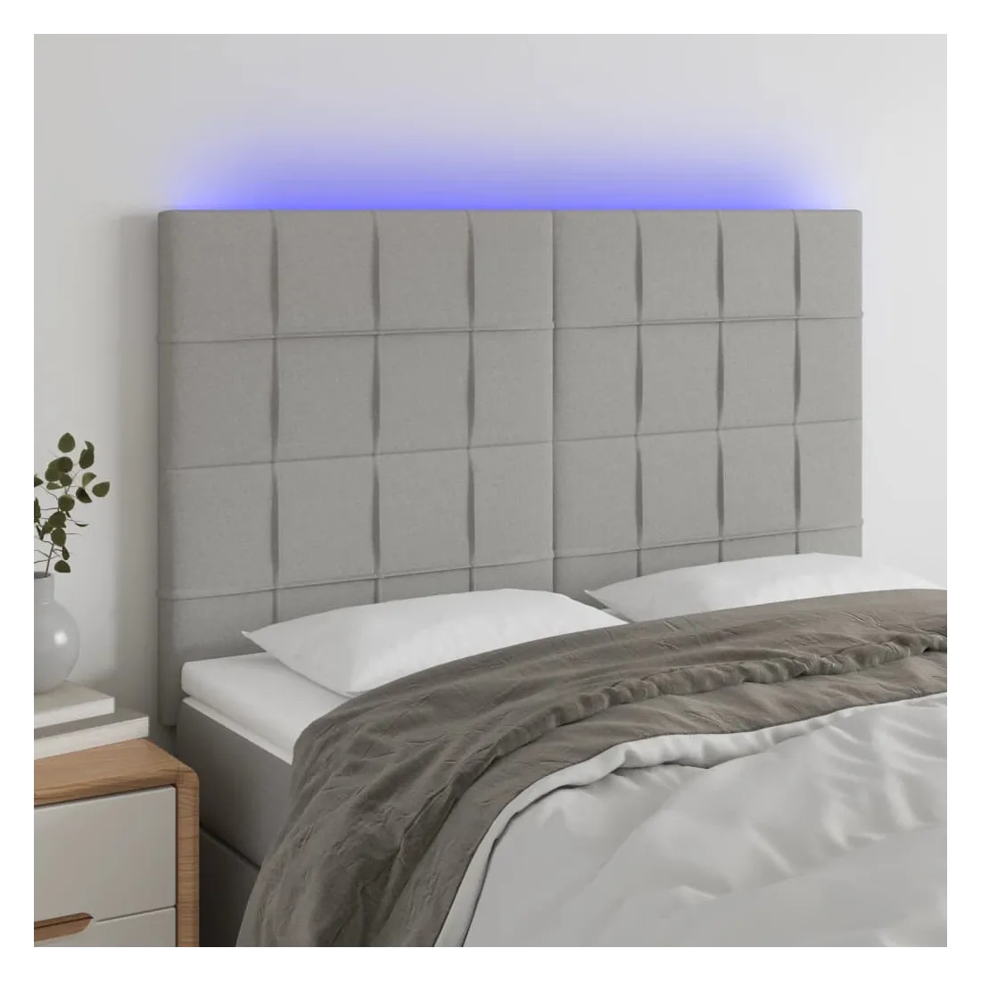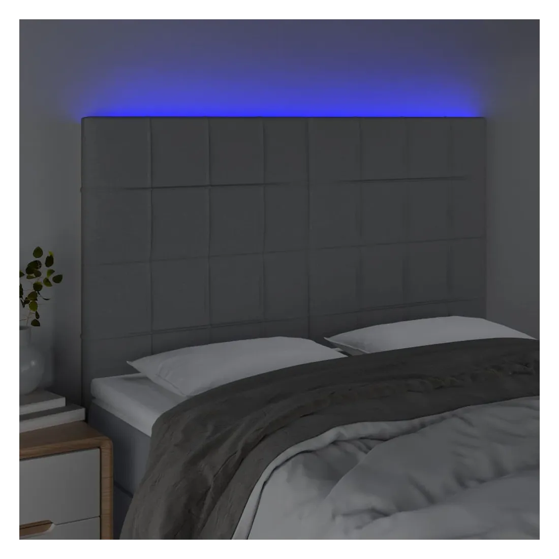 Cette tête de lit à LED classique, au design élégant, donne à votre cadre de lit une touche de modernité étonnante et convient parfaitement à toute chambre à coucher. Tissu durable : le tissu présente un aspect simple et épuré, et il est respirant et durable.LED colorée : apportez de l'éclairage dans l'obscurité avec des lumières LED colorées !Hauteur réglable : la tête de lit est réglable en hauteur selon vos préférences.Excellent soutien : la tête de lit vous offre un excellent soutien du dos lorsque vous êtes assis dans votre lit pour lire ou regarder la télévision.Bande à LED découpable : cette bande à LED flexible peut être ajustée en longueur. Le symbole des ciseaux indique où la bande peut être coupée en toute sécurité sans l'endommager. Remarque :Seule la partie avec un symbole de ciseaux peut être coupée et seule la partie avec l'USB continuera à fonctionner comme avant.Chaque produit est livré avec un manuel de montage dans la boîte pour un montage facile.Ce produit est doté d'un connecteur USB, mais la source d'alimentation certifiée de USB 5V n'est pas incluse.