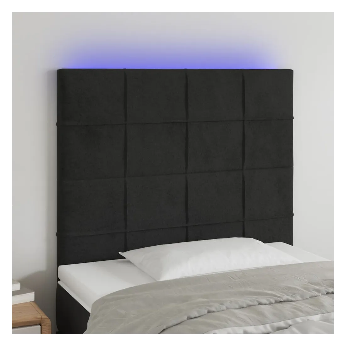 Cette tête de lit à LED classique, au design élégant, donne à votre cadre de lit une touche de modernité étonnante et convient parfaitement à toute chambre à coucher. Velours doux : le velours est un tissu doux et luxueux qui se reconnaît à son tas dense de fibres uniformément coupées qui ont une touche lisse. Le tissu en velours présente un toucher doux distinctif, ce qui le rend confortable au toucher.LED colorée : apportez de l'éclairage dans l'obscurité avec des lumières LED colorées !Hauteur réglable : la tête de lit est réglable en hauteur selon vos préférences.Excellent soutien : la tête de lit vous offre un excellent soutien du dos lorsque vous êtes assis dans votre lit pour lire ou regarder la télévision.Bande à LED découpable : cette bande à LED flexible peut être ajustée en longueur. Le symbole des ciseaux indique où la bande peut être coupée en toute sécurité sans l'endommager. Remarque :Seule la partie avec un symbole de ciseaux peut être coupée et seule la partie avec l'USB continuera à fonctionner comme avant.Chaque produit est livré avec un manuel de montage dans la boîte pour un montage facile.Ce produit est doté d'un connecteur USB, mais la source d'alimentation certifiée de USB 5V n'est pas incluse.