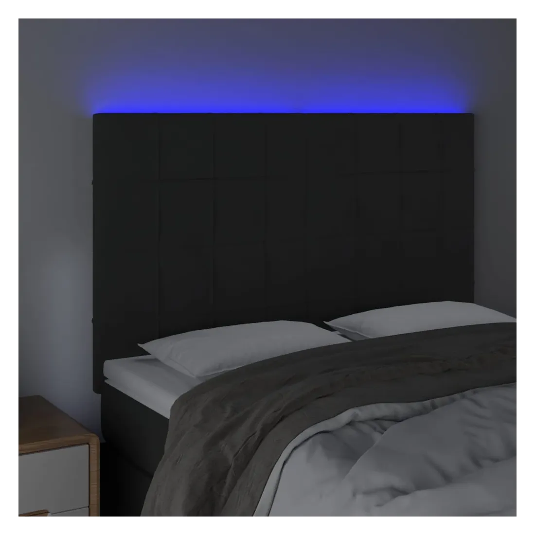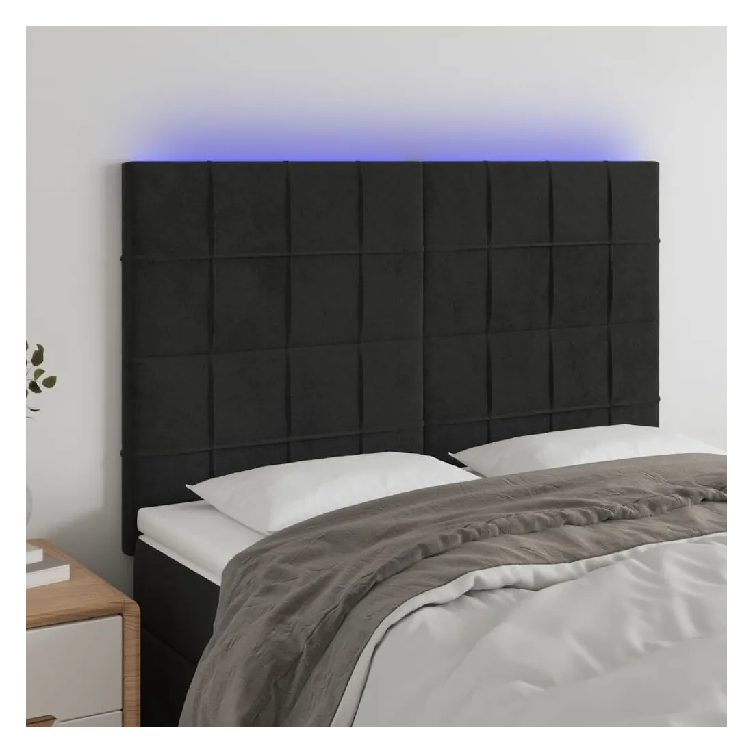 Cette tête de lit à LED classique, au design élégant, donne à votre cadre de lit une touche de modernité étonnante et convient parfaitement à toute chambre à coucher. Velours doux : le velours est un tissu doux et luxueux qui se reconnaît à son tas dense de fibres uniformément coupées qui ont une touche lisse. Le tissu en velours présente un toucher doux distinctif, ce qui le rend confortable au toucher.LED colorée : apportez de l'éclairage dans l'obscurité avec des lumières LED colorées !Hauteur réglable : la tête de lit est réglable en hauteur selon vos préférences.Excellent soutien : la tête de lit vous offre un excellent soutien du dos lorsque vous êtes assis dans votre lit pour lire ou regarder la télévision.Bande à LED découpable : cette bande à LED flexible peut être ajustée en longueur. Le symbole des ciseaux indique où la bande peut être coupée en toute sécurité sans l'endommager. Remarque :Seule la partie avec un symbole de ciseaux peut être coupée et seule la partie avec l'USB continuera à fonctionner comme avant.Chaque produit est livré avec un manuel de montage dans la boîte pour un montage facile.Ce produit est doté d'un connecteur USB, mais la source d'alimentation certifiée de USB 5V n'est pas incluse.