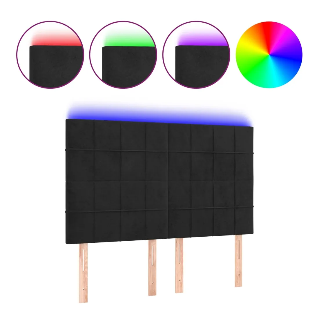 Cette tête de lit à LED classique, au design élégant, donne à votre cadre de lit une touche de modernité étonnante et convient parfaitement à toute chambre à coucher. Velours doux : le velours est un tissu doux et luxueux qui se reconnaît à son tas dense de fibres uniformément coupées qui ont une touche lisse. Le tissu en velours présente un toucher doux distinctif, ce qui le rend confortable au toucher. LED colorée : apportez de l'éclairage dans l'obscurité avec des lumières LED colorées ! Hauteur réglable : la tête de lit est réglable en hauteur selon vos préférences. Excellent soutien : la tête de lit vous offre un excellent soutien du dos lorsque vous êtes assis dans votre lit pour lire ou regarder la télévision. Bande à LED découpable : cette bande à LED flexible peut être ajustée