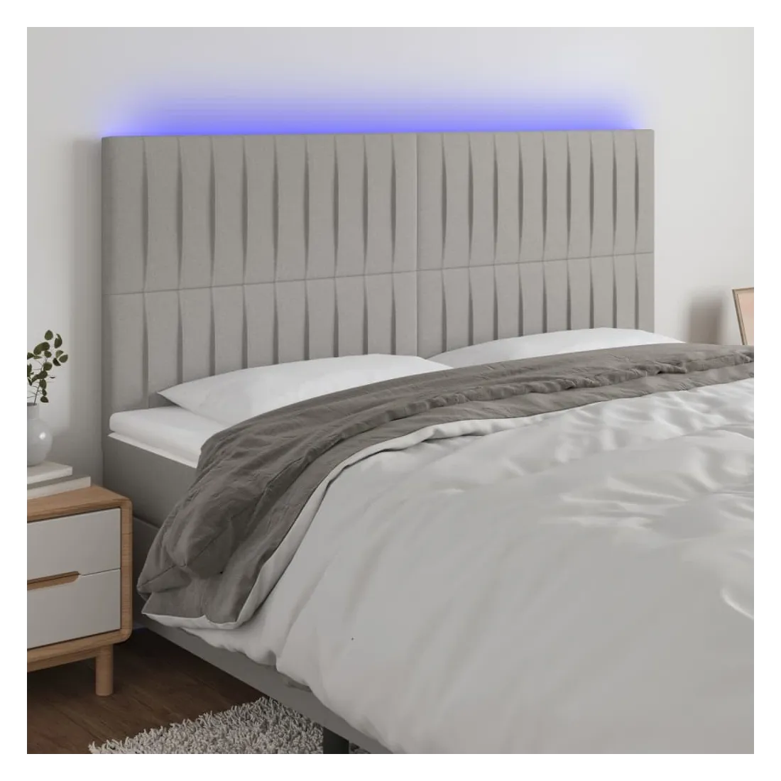 Tête de lit à LED Gris clair 180x5x118/128 cm Tissu