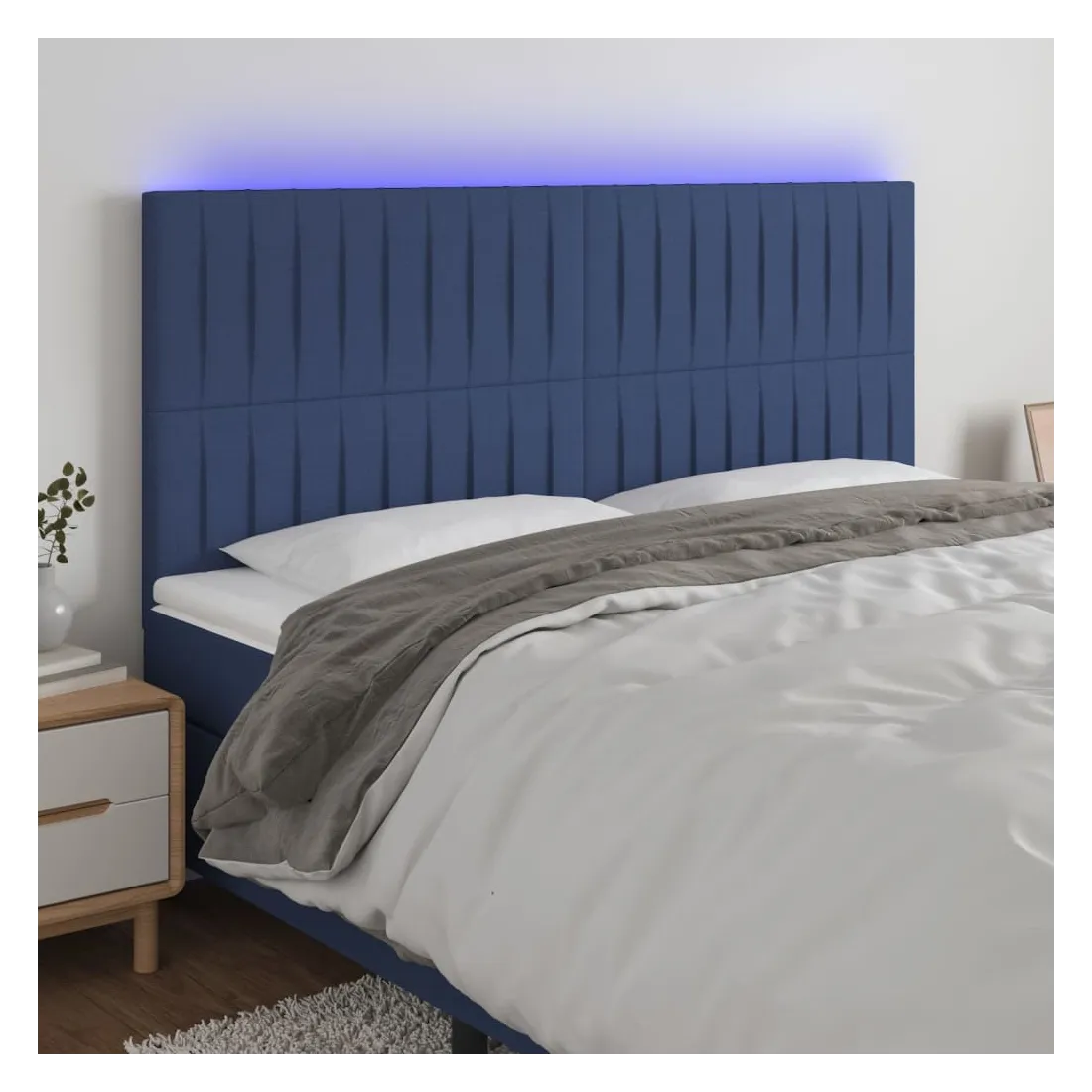 Tête de lit à LED Bleu 200x5x118/128 cm Tissu