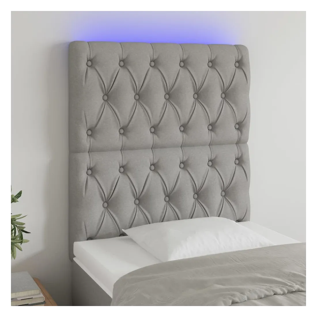 Cette tête de lit à LED classique, au design élégant, donne à votre cadre de lit une touche de modernité étonnante et convient parfaitement à toute chambre à coucher. Tissu durable : le tissu présente un aspect simple et épuré, et il est respirant et durable.LED colorée : apportez de l'éclairage dans l'obscurité avec des lumières LED colorées !Hauteur réglable : la tête de lit est réglable en hauteur selon vos préférences.Excellent soutien : la tête de lit vous offre un excellent soutien du dos lorsque vous êtes assis dans votre lit pour lire ou regarder la télévision.Bande à LED découpable : cette bande à LED flexible peut être ajustée en longueur. Le symbole des ciseaux indique où la bande peut être coupée en toute sécurité sans l'endommager. Remarque :Seule la partie avec un symbole de ciseaux peut être coupée et seule la partie avec l'USB continuera à fonctionner comme avant.Chaque produit est livré avec un manuel de montage dans la boîte pour un montage facile.Ce produit est doté d'un connecteur USB, mais la source d'alimentation certifiée de USB 5V n'est pas incluse.