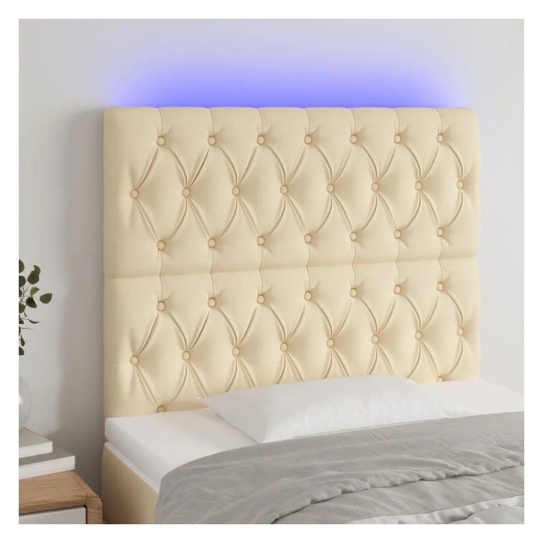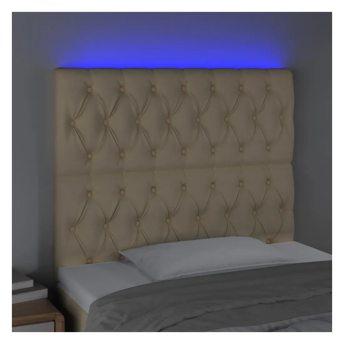 Cette tête de lit à LED classique, au design élégant, donne à votre cadre de lit une touche de modernité étonnante et convient parfaitement à toute chambre à coucher. Tissu durable : le tissu présente un aspect simple et épuré, et il est respirant et durable.LED colorée : apportez de l'éclairage dans l'obscurité avec des lumières LED colorées !Hauteur réglable : la tête de lit est réglable en hauteur selon vos préférences.Excellent soutien : la tête de lit vous offre un excellent soutien du dos lorsque vous êtes assis dans votre lit pour lire ou regarder la télévision.Bande à LED découpable : cette bande à LED flexible peut être ajustée en longueur. Le symbole des ciseaux indique où la bande peut être coupée en toute sécurité sans l'endommager. Remarque :Seule la partie avec un symbole de ciseaux peut être coupée et seule la partie avec l'USB continuera à fonctionner comme avant.Chaque produit est livré avec un manuel de montage dans la boîte pour un montage facile.Ce produit est doté d'un connecteur USB, mais la source d'alimentation certifiée de USB 5V n'est pas incluse.