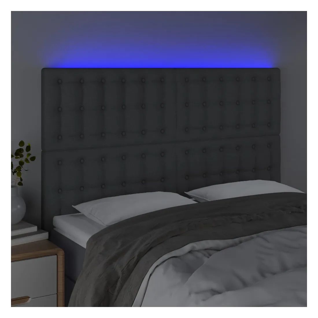 Tête de lit à LED Gris foncé 144x5x118/128 cm Tissu