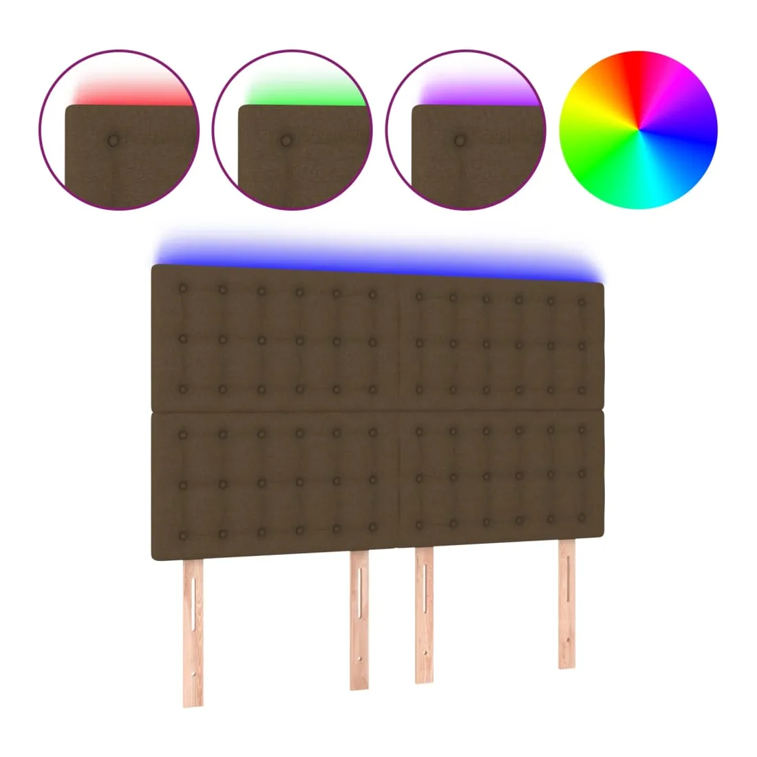 Tête de lit à LED Marron foncé 144x5x118/128 cm Tissu