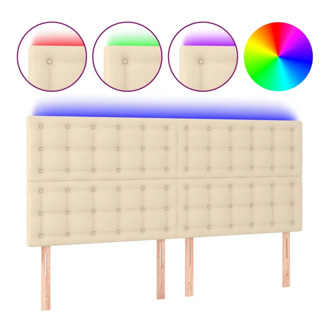 Cette tête de lit à LED classique, au design élégant, donne à votre cadre de lit une touche de modernité étonnante et convient parfaitement à toute chambre à coucher. Tissu durable : le tissu présente un aspect simple et épuré, et il est respirant et durable. LED colorée : apportez de l'éclairage dans l'obscurité avec des lumières LED colorées ! Hauteur réglable : la tête de lit est réglable en hauteur selon vos préférences. Excellent soutien : la tête de lit vous offre un excellent soutien du dos lorsque vous êtes assis dans votre lit pour lire ou regarder la télévision. Bande à LED découpable : cette bande à LED flexible peut être ajustée en longueur. Le symbole des ciseaux indique où la bande peut être coupée en toute sécurité sans l'endommager. Remarque : Seule la partie avec un sy