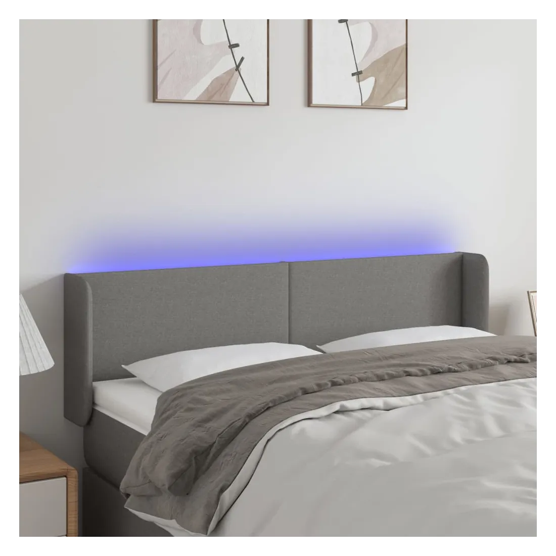 Tête de lit à LED Gris foncé 147x16x78/88 cm Tissu