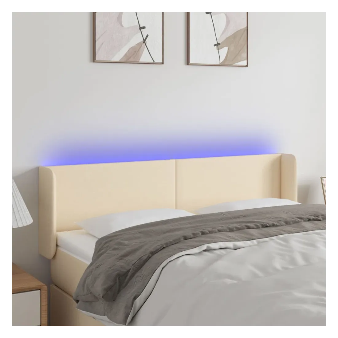 Tête de lit à LED Crème 147x16x78/88 cm Tissu