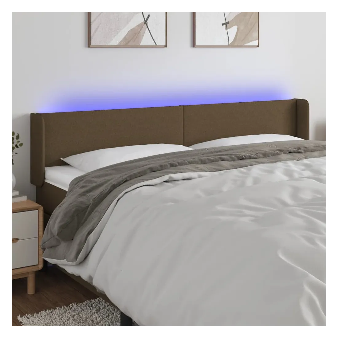 Tête de lit à LED Marron foncé 203x16x78/88 cm Tissu