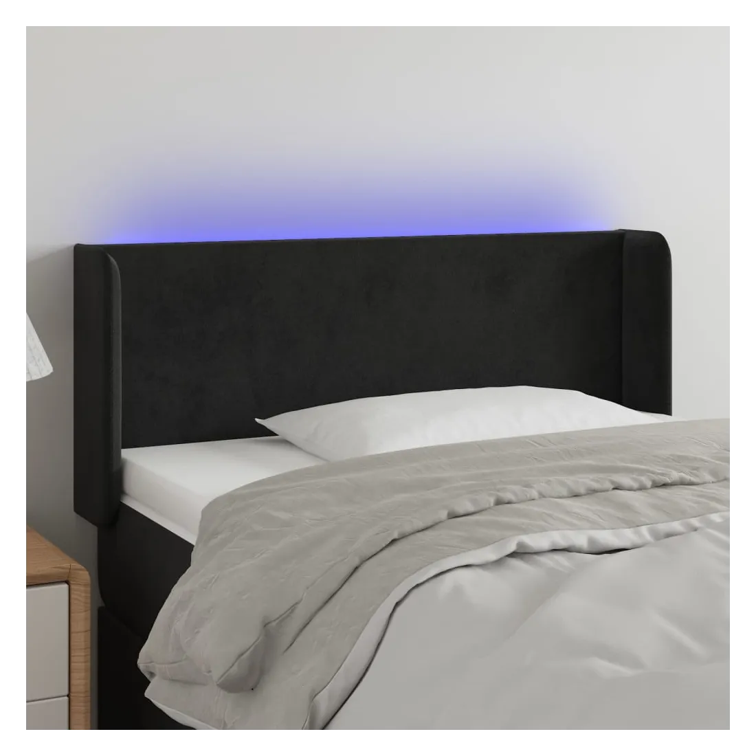 Cette tête de lit à LED classique, au design élégant, donne à votre cadre de lit une touche de modernité étonnante et convient parfaitement à toute chambre à coucher. Velours doux : le velours est un tissu doux et luxueux qui se reconnaît à son tas dense de fibres uniformément coupées qui ont une touche lisse. Le tissu en velours présente un toucher doux distinctif, ce qui le rend confortable au toucher.LED colorée : apportez de l'éclairage dans l'obscurité avec des lumières LED colorées !Hauteur réglable : la tête de lit est réglable en hauteur selon vos préférences.Excellent soutien : la tête de lit vous offre un excellent soutien du dos lorsque vous êtes assis dans votre lit pour lire ou regarder la télévision.Bande à LED découpable : cette bande à LED flexible peut être ajustée en longueur. Le symbole des ciseaux indique où la bande peut être coupée en toute sécurité sans l'endommager. Remarque :Seule la partie avec un symbole de ciseaux peut être coupée et seule la partie avec l'USB continuera à fonctionner comme avant.Chaque produit est livré avec un manuel de montage dans la boîte pour un montage facile.Ce produit est doté d'un connecteur USB, mais la source d'alimentation certifiée de USB 5V n'est pas incluse.