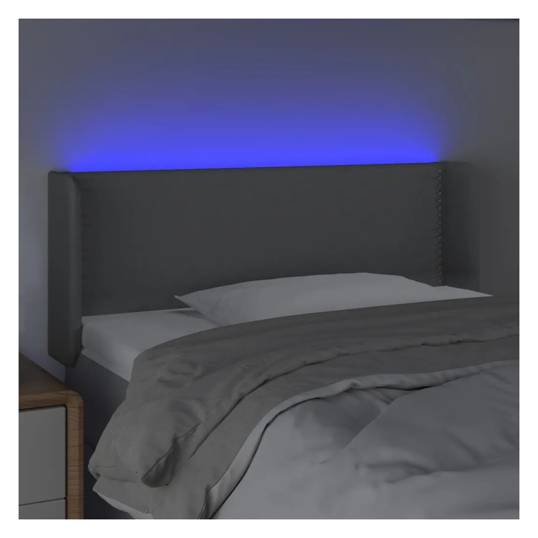 Cette tête de lit à LED classique, au design élégant, donne à votre cadre de lit une touche de modernité étonnante et convient parfaitement à toute chambre à coucher. Tissu durable : le tissu présente un aspect simple et épuré, et il est respirant et durable. LED colorée : apportez de l'éclairage dans l'obscurité avec des lumières LED colorées ! Hauteur réglable : la tête de lit est réglable en hauteur selon vos préférences. Excellent soutien : la tête de lit vous offre un excellent soutien du dos lorsque vous êtes assis dans votre lit pour lire ou regarder la télévision. Bande à LED découpable : cette bande à LED flexible peut être ajustée en longueur. Le symbole des ciseaux indique où la bande peut être coupée en toute sécurité sans l'endommager. Remarque : Seule la partie avec un sy