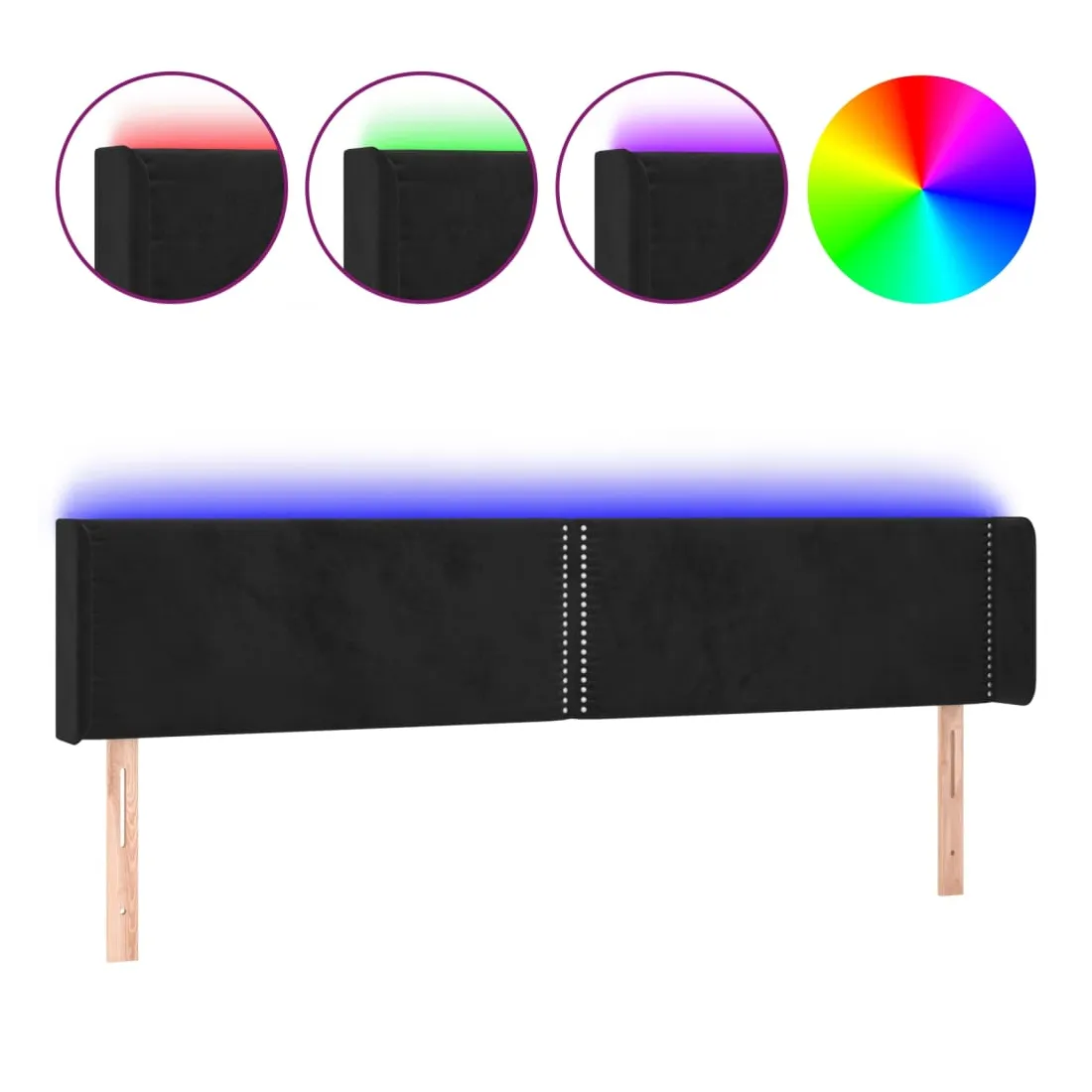 Tête de lit à LED Noir 183x16x78/88 cm Velours