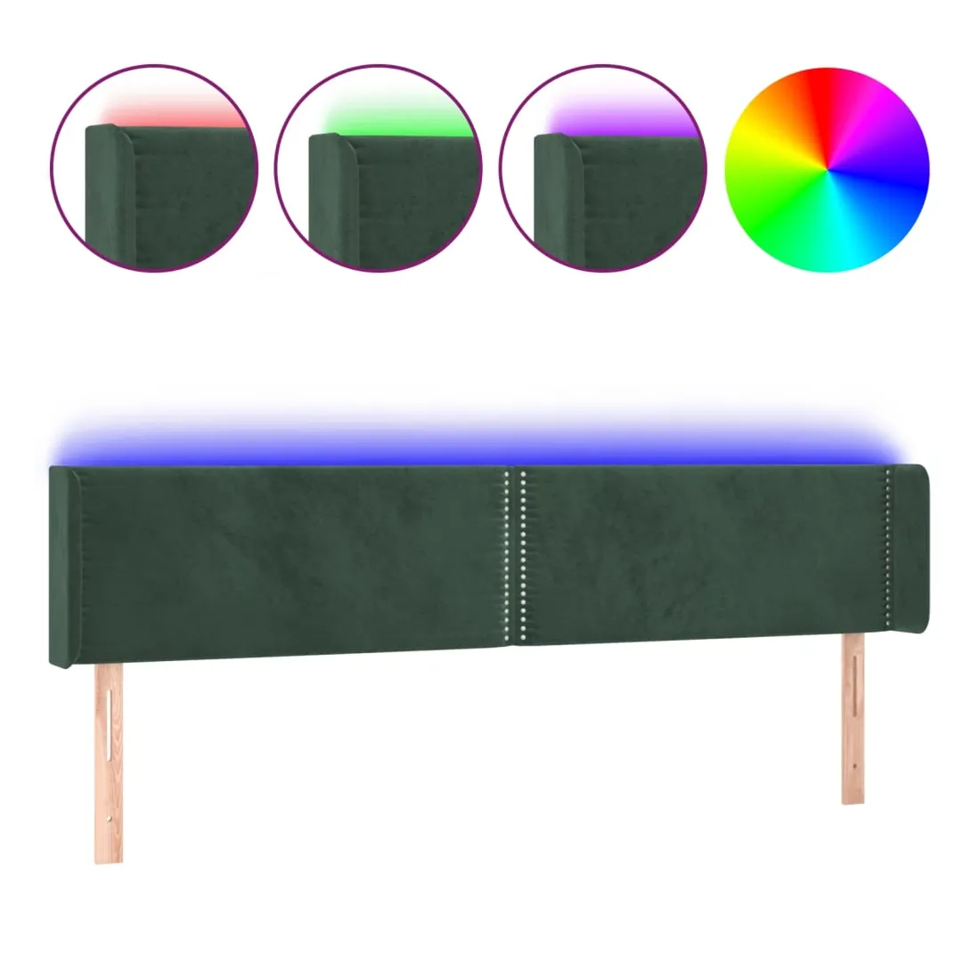 Tête de lit à LED Vert foncé 203x16x78/88 cm Velours