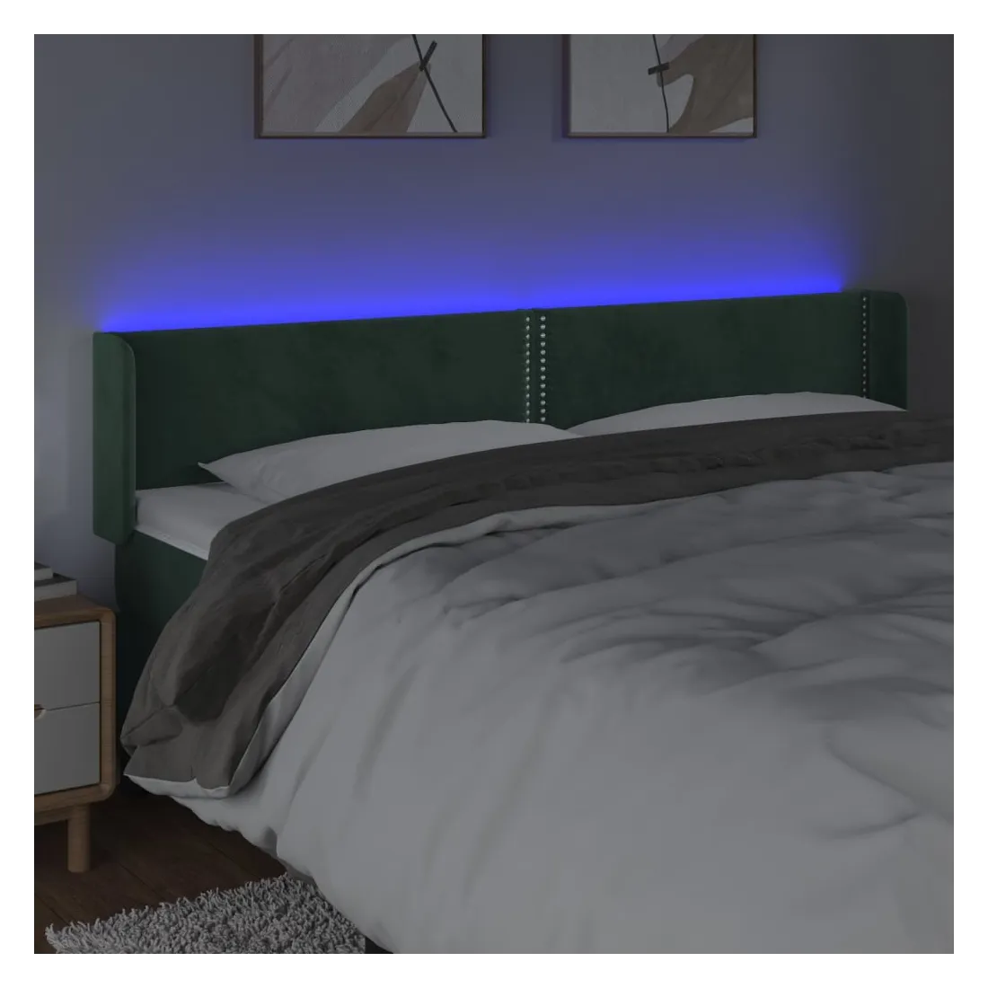 Cette tête de lit à LED classique, au design élégant, donne à votre cadre de lit une touche de modernité étonnante et convient parfaitement à toute chambre à coucher. Velours doux : le velours est un tissu doux et luxueux qui se reconnaît à son tas dense de fibres uniformément coupées qui ont une touche lisse. Le tissu en velours présente un toucher doux distinctif, ce qui le rend confortable au toucher. LED colorée : apportez de l'éclairage dans l'obscurité avec des lumières LED colorées ! Hauteur réglable : la tête de lit est réglable en hauteur selon vos préférences. Excellent soutien : la tête de lit vous offre un excellent soutien du dos lorsque vous êtes assis dans votre lit pour lire ou regarder la télévision. Bande à LED découpable : cette bande à LED flexible peut être ajustée