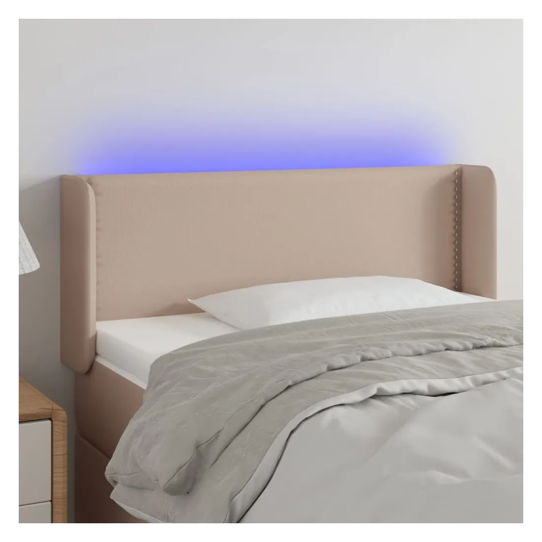 Cette tête de lit à LED classique, au design élégant, donne à votre cadre de lit une touche de modernité étonnante et convient parfaitement à toute chambre à coucher. Similicuir durable : le similicuir de qualité supérieure est un matériau très durable. Il est résistant aux taches, ce qui le rend facile à nettoyer avec un chiffon humide. La surface lisse donne également un aspect luxueux et la beauté du cuir véritable.LED colorée : apportez de l'éclairage dans l'obscurité avec des lumières LED colorées !Hauteur réglable : la tête de lit est réglable en hauteur selon vos préférences.Excellent soutien : la tête de lit vous offre un excellent soutien du dos lorsque vous êtes assis dans votre lit pour lire ou regarder la télévision.Bande à LED découpable : cette bande à LED flexible peut être ajustée en longueur. Le symbole des ciseaux indique où la bande peut être coupée en toute sécurité sans l'endommager. Remarque :Seule la partie avec un symbole de ciseaux peut être coupée et seule la partie avec l'USB continuera à fonctionner comme avant.Chaque produit est livré avec un manuel de montage dans la boîte pour un montage facile.Ce produit est doté d'un connecteur USB, mais la source d'alimentation certifiée de USB 5V n'est pas incluse.