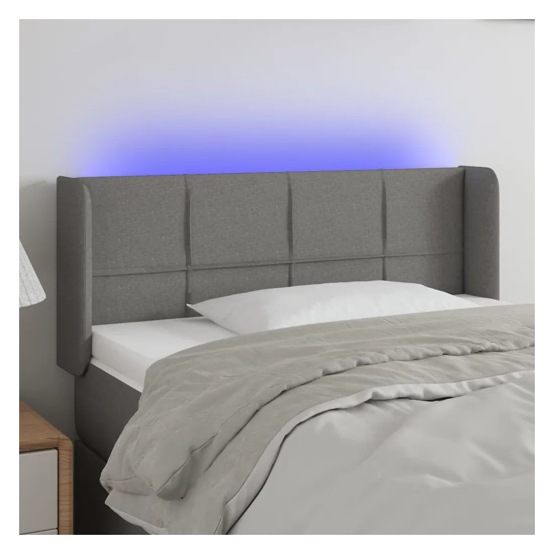 Cette tête de lit à LED classique, au design élégant, donne à votre cadre de lit une touche de modernité étonnante et convient parfaitement à toute chambre à coucher. Tissu durable : le tissu présente un aspect simple et épuré, et il est respirant et durable.LED colorée : apportez de l'éclairage dans l'obscurité avec des lumières LED colorées !Hauteur réglable : la tête de lit est réglable en hauteur selon vos préférences.Excellent soutien : la tête de lit vous offre un excellent soutien du dos lorsque vous êtes assis dans votre lit pour lire ou regarder la télévision.Bande à LED découpable : cette bande à LED flexible peut être ajustée en longueur. Le symbole des ciseaux indique où la bande peut être coupée en toute sécurité sans l'endommager. Remarque :Seule la partie avec un symbole de ciseaux peut être coupée et seule la partie avec l'USB continuera à fonctionner comme avant.Chaque produit est livré avec un manuel de montage dans la boîte pour un montage facile.Ce produit est doté d'un connecteur USB, mais la source d'alimentation certifiée de USB 5V n'est pas incluse.