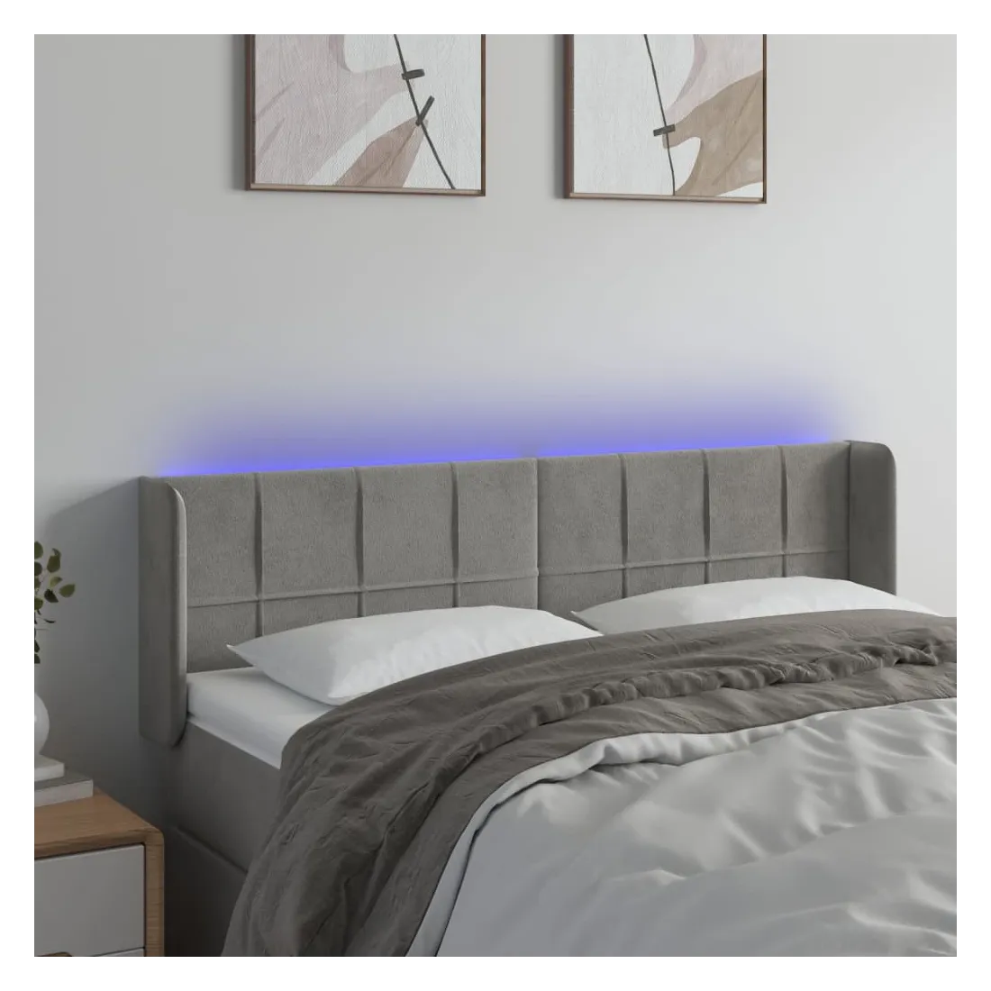 Tête de lit à LED Gris clair 147x16x78/88 cm Velours
