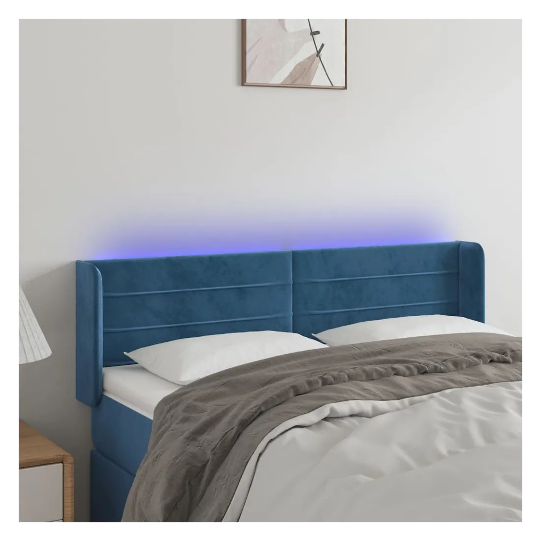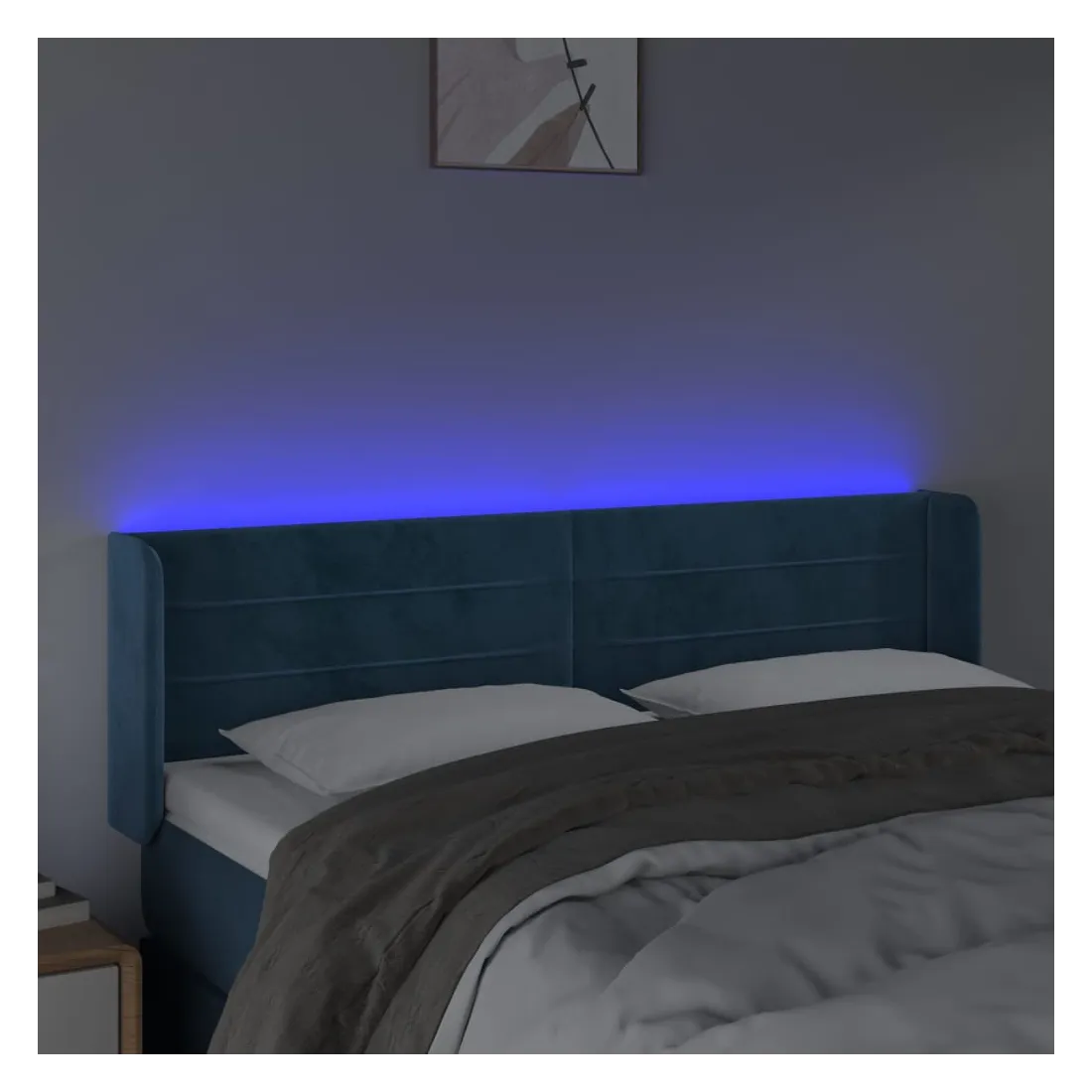 Cette tête de lit à LED classique, au design élégant, donne à votre cadre de lit une touche de modernité étonnante et convient parfaitement à toute chambre à coucher. Velours doux : le velours est un tissu doux et luxueux qui se reconnaît à son tas dense de fibres uniformément coupées qui ont une touche lisse. Le tissu en velours présente un toucher doux distinctif, ce qui le rend confortable au toucher.LED colorée : apportez de l'éclairage dans l'obscurité avec des lumières LED colorées !Hauteur réglable : la tête de lit est réglable en hauteur selon vos préférences.Excellent soutien : la tête de lit vous offre un excellent soutien du dos lorsque vous êtes assis dans votre lit pour lire ou regarder la télévision.Bande à LED découpable : cette bande à LED flexible peut être ajustée en longueur. Le symbole des ciseaux indique où la bande peut être coupée en toute sécurité sans l'endommager. Remarque :Seule la partie avec un symbole de ciseaux peut être coupée et seule la partie avec l'USB continuera à fonctionner comme avant.Chaque produit est livré avec un manuel de montage dans la boîte pour un montage facile.Ce produit est doté d'un connecteur USB, mais la source d'alimentation certifiée de USB 5V n'est pas incluse.