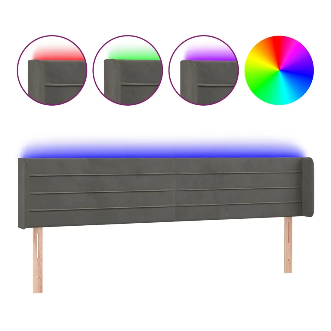 Tête de lit à LED Gris foncé 203x16x78/88 cm Velours
