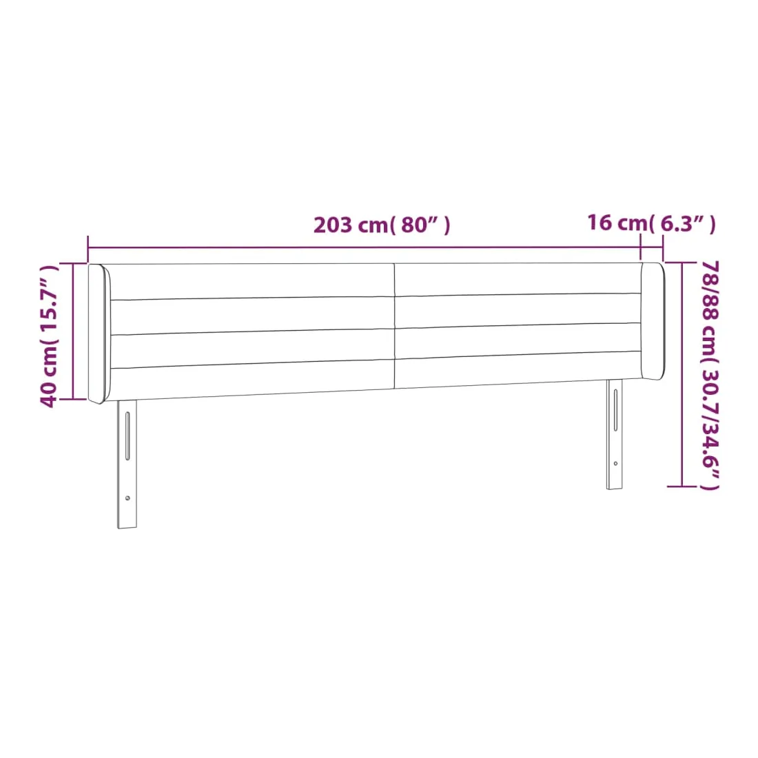203 x 16 x 78/88 cm