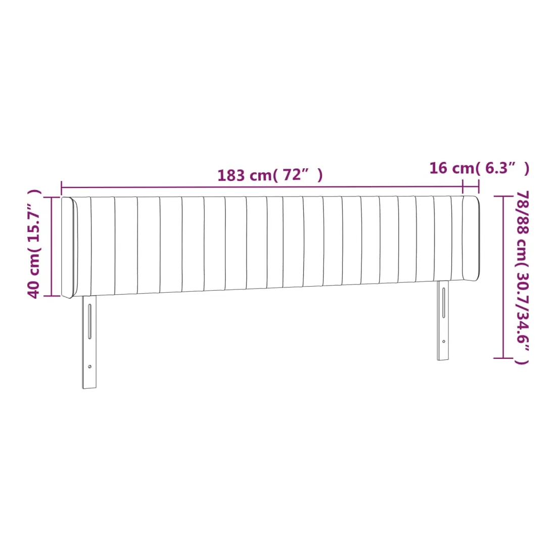 - 183 x 16 x 78/88 cm