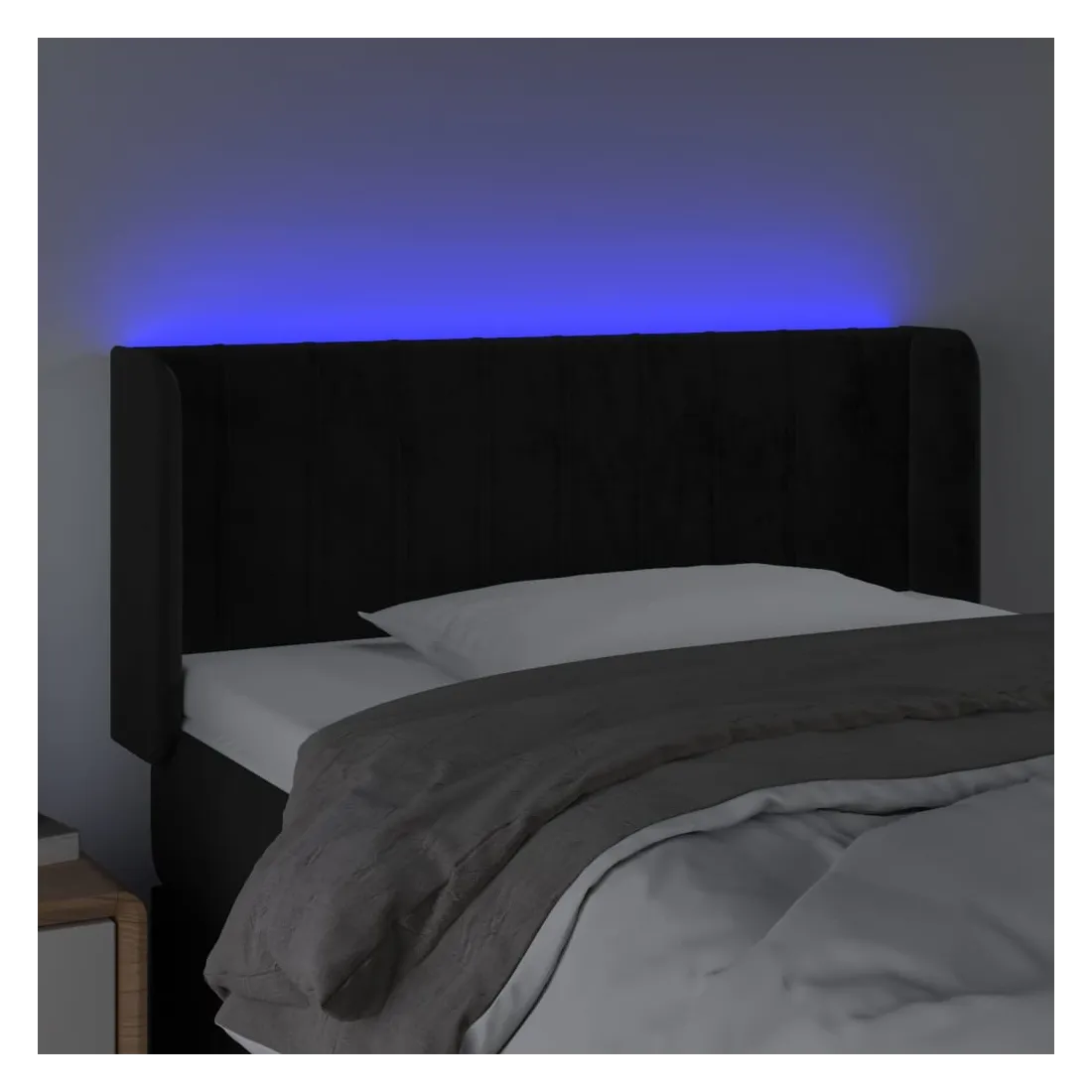 Cette tête de lit à LED classique, au design élégant, donne à votre cadre de lit une touche de modernité étonnante et convient parfaitement à toute chambre à coucher. Velours doux : le velours est un tissu doux et luxueux qui se reconnaît à son tas dense de fibres uniformément coupées qui ont une touche lisse. Le tissu en velours présente un toucher doux distinctif, ce qui le rend confortable au toucher.LED colorée : apportez de l'éclairage dans l'obscurité avec des lumières LED colorées !Hauteur réglable : la tête de lit est réglable en hauteur selon vos préférences.Excellent soutien : la tête de lit vous offre un excellent soutien du dos lorsque vous êtes assis dans votre lit pour lire ou regarder la télévision.Bande à LED découpable : cette bande à LED flexible peut être ajustée en longueur. Le symbole des ciseaux indique où la bande peut être coupée en toute sécurité sans l'endommager. Remarque :Seule la partie avec un symbole de ciseaux peut être coupée et seule la partie avec l'USB continuera à fonctionner comme avant.Chaque produit est livré avec un manuel de montage dans la boîte pour un montage facile.Ce produit est doté d'un connecteur USB, mais la source d'alimentation certifiée de USB 5V n'est pas incluse.