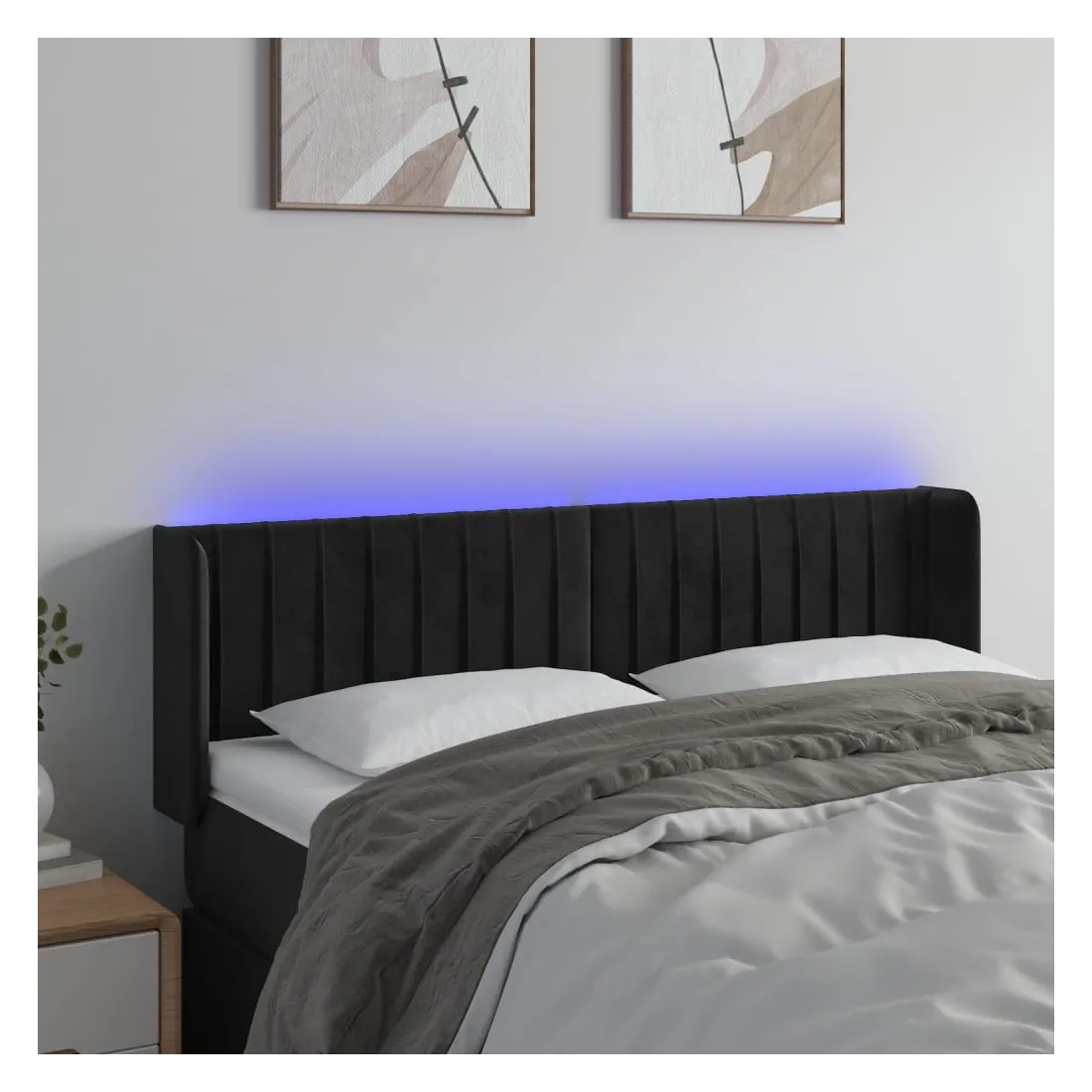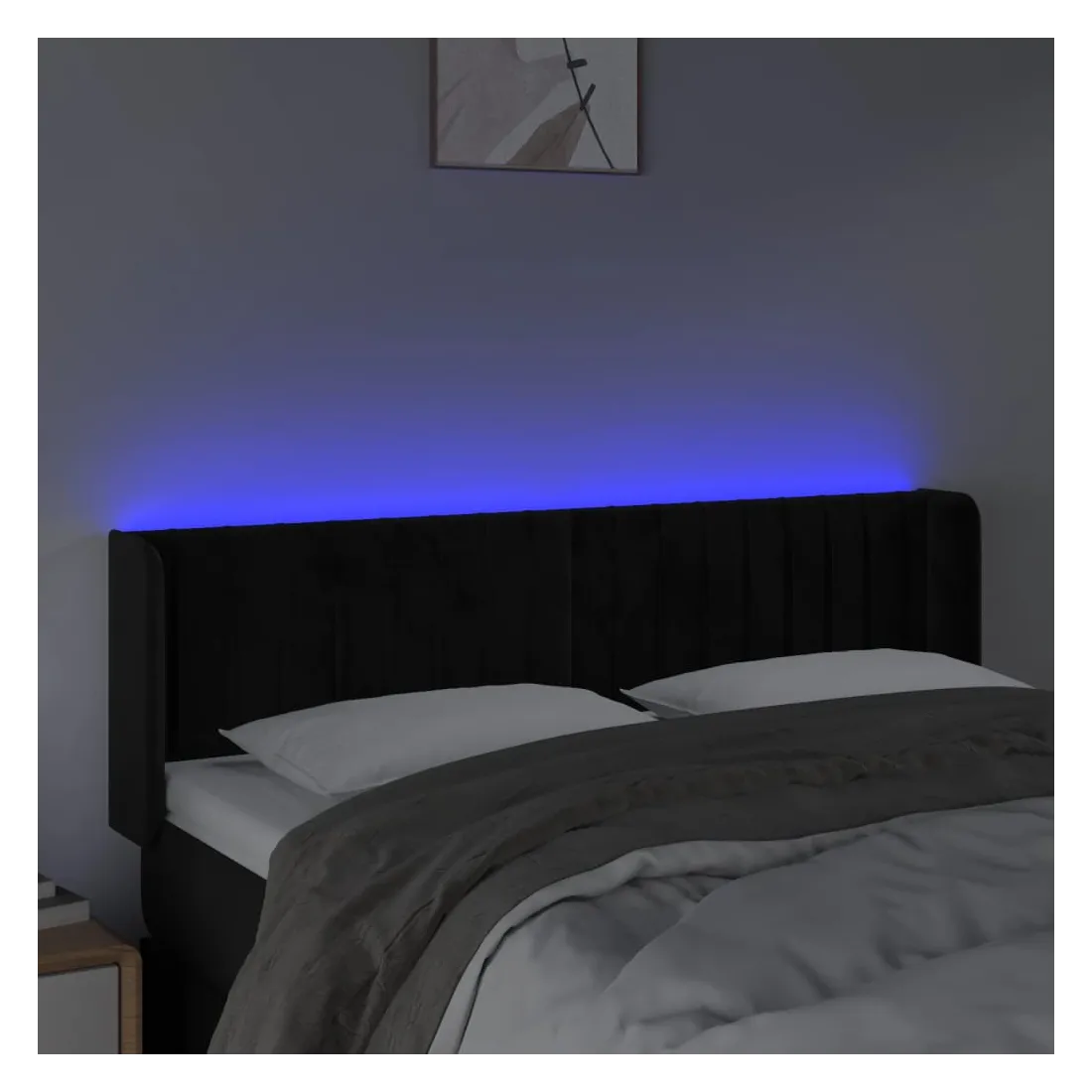 Cette tête de lit à LED classique, au design élégant, donne à votre cadre de lit une touche de modernité étonnante et convient parfaitement à toute chambre à coucher. Velours doux : le velours est un tissu doux et luxueux qui se reconnaît à son tas dense de fibres uniformément coupées qui ont une touche lisse. Le tissu en velours présente un toucher doux distinctif, ce qui le rend confortable au toucher.LED colorée : apportez de l'éclairage dans l'obscurité avec des lumières LED colorées !Hauteur réglable : la tête de lit est réglable en hauteur selon vos préférences.Excellent soutien : la tête de lit vous offre un excellent soutien du dos lorsque vous êtes assis dans votre lit pour lire ou regarder la télévision.Bande à LED découpable : cette bande à LED flexible peut être ajustée en longueur. Le symbole des ciseaux indique où la bande peut être coupée en toute sécurité sans l'endommager. Remarque :Seule la partie avec un symbole de ciseaux peut être coupée et seule la partie avec l'USB continuera à fonctionner comme avant.Chaque produit est livré avec un manuel de montage dans la boîte pour un montage facile.Ce produit est doté d'un connecteur USB, mais la source d'alimentation certifiée de USB 5V n'est pas incluse.
