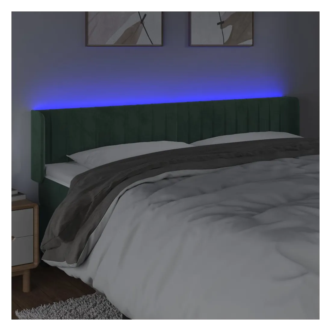 Cette tête de lit à LED classique, au design élégant, donne à votre cadre de lit une touche de modernité étonnante et convient parfaitement à toute chambre à coucher. Velours doux : le velours est un tissu doux et luxueux qui se reconnaît à son tas dense de fibres uniformément coupées qui ont une touche lisse. Le tissu en velours présente un toucher doux distinctif, ce qui le rend confortable au toucher. LED colorée : apportez de l'éclairage dans l'obscurité avec des lumières LED colorées ! Hauteur réglable : la tête de lit est réglable en hauteur selon vos préférences. Excellent soutien : la tête de lit vous offre un excellent soutien du dos lorsque vous êtes assis dans votre lit pour lire ou regarder la télévision. Bande à LED découpable : cette bande à LED flexible peut être ajustée