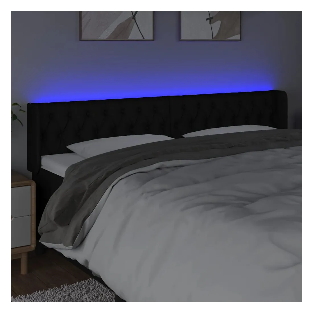 Tête de lit à LED Noir 183x16x78/88 cm Tissu