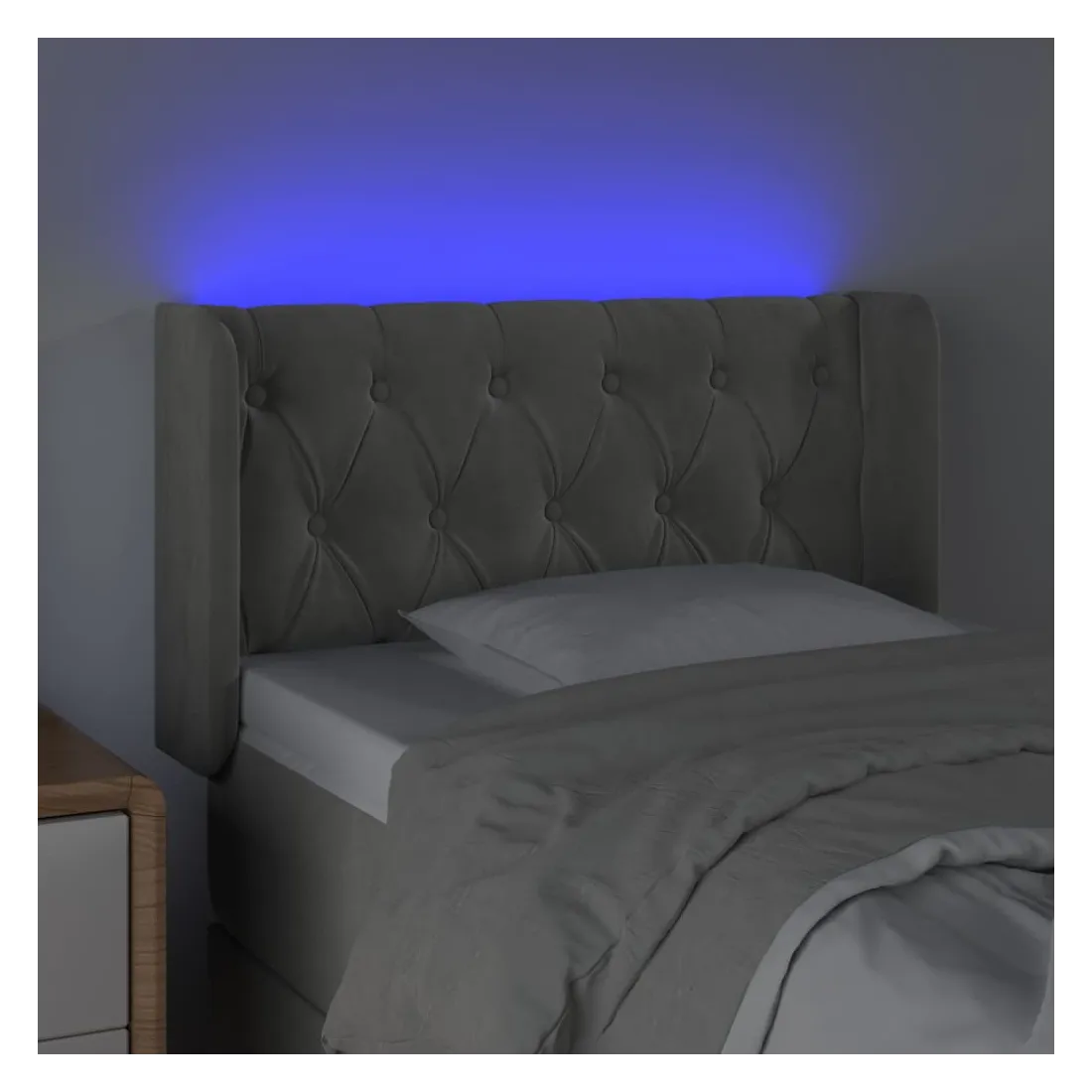 Cette tête de lit à LED classique, au design élégant, donne à votre cadre de lit une touche de modernité étonnante et convient parfaitement à toute chambre à coucher. Velours doux : le velours est un tissu doux et luxueux qui se reconnaît à son tas dense de fibres uniformément coupées qui ont une touche lisse. Le tissu en velours présente un toucher doux distinctif, ce qui le rend confortable au toucher.LED colorée : apportez de l'éclairage dans l'obscurité avec des lumières LED colorées !Hauteur réglable : la tête de lit est réglable en hauteur selon vos préférences.Excellent soutien : la tête de lit vous offre un excellent soutien du dos lorsque vous êtes assis dans votre lit pour lire ou regarder la télévision.Bande à LED découpable : cette bande à LED flexible peut être ajustée en longueur. Le symbole des ciseaux indique où la bande peut être coupée en toute sécurité sans l'endommager. Remarque :Seule la partie avec un symbole de ciseaux peut être coupée et seule la partie avec l'USB continuera à fonctionner comme avant.Chaque produit est livré avec un manuel de montage dans la boîte pour un montage facile.Ce produit est doté d'un connecteur USB, mais la source d'alimentation certifiée de USB 5V n'est pas incluse.