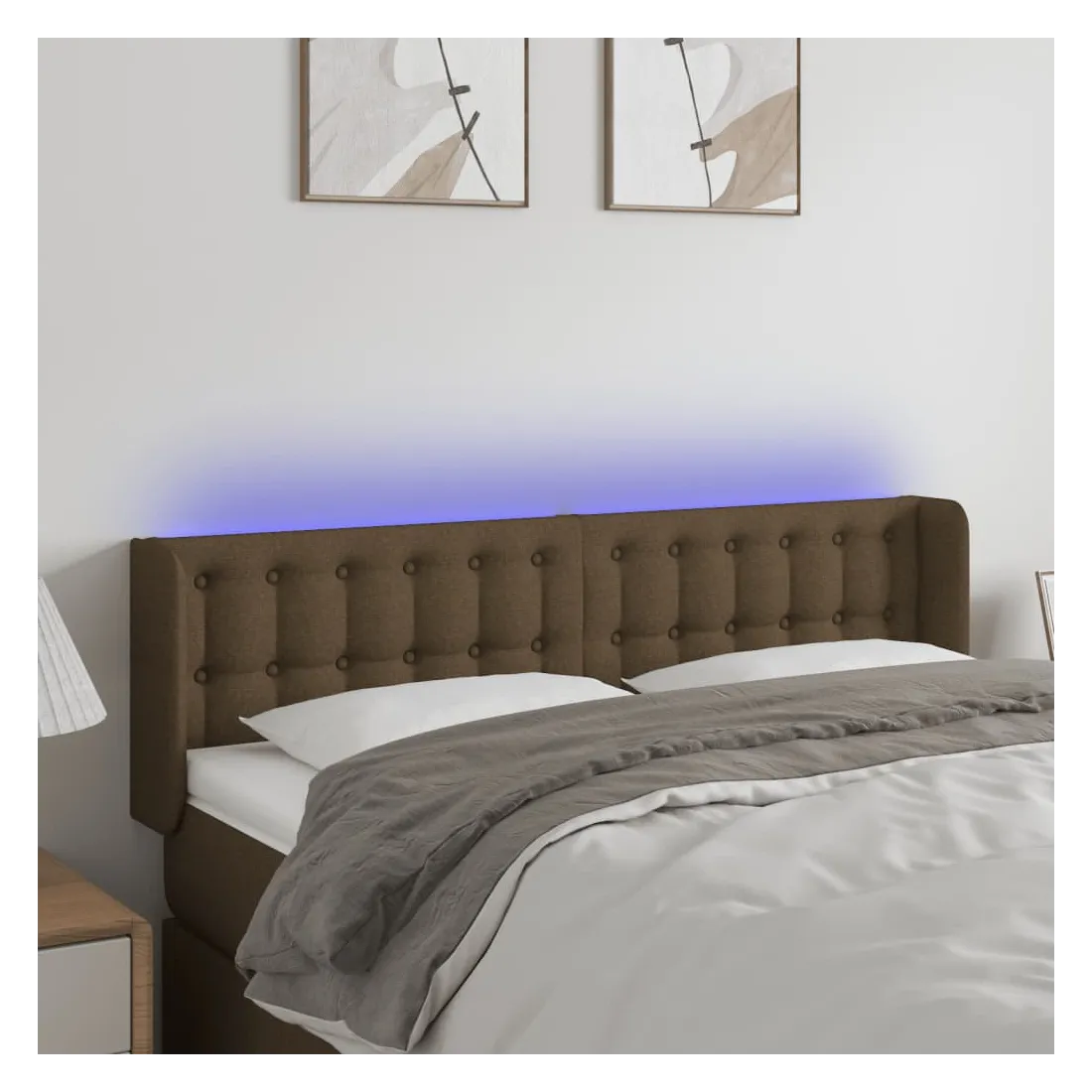 Tête de lit à LED Marron foncé 147x16x78/88 cm Tissu