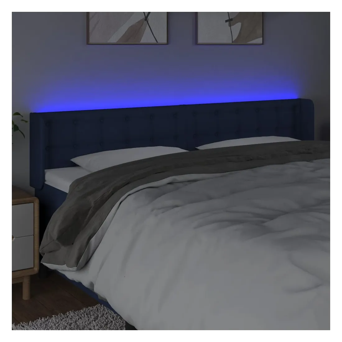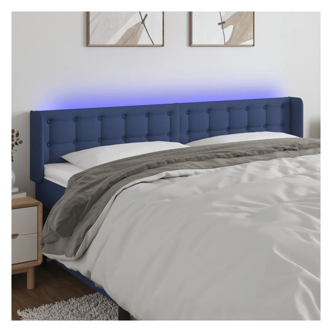 Cette tête de lit à LED classique, au design élégant, donne à votre cadre de lit une touche de modernité étonnante et convient parfaitement à toute chambre à coucher. Tissu durable : le tissu présente un aspect simple et épuré, et il est respirant et durable. LED colorée : apportez de l'éclairage dans l'obscurité avec des lumières LED colorées ! Hauteur réglable : la tête de lit est réglable en hauteur selon vos préférences. Excellent soutien : la tête de lit vous offre un excellent soutien du dos lorsque vous êtes assis dans votre lit pour lire ou regarder la télévision. Bande à LED découpable : cette bande à LED flexible peut être ajustée en longueur. Le symbole des ciseaux indique où la bande peut être coupée en toute sécurité sans l'endommager. Remarque : Seule la partie avec un sy
