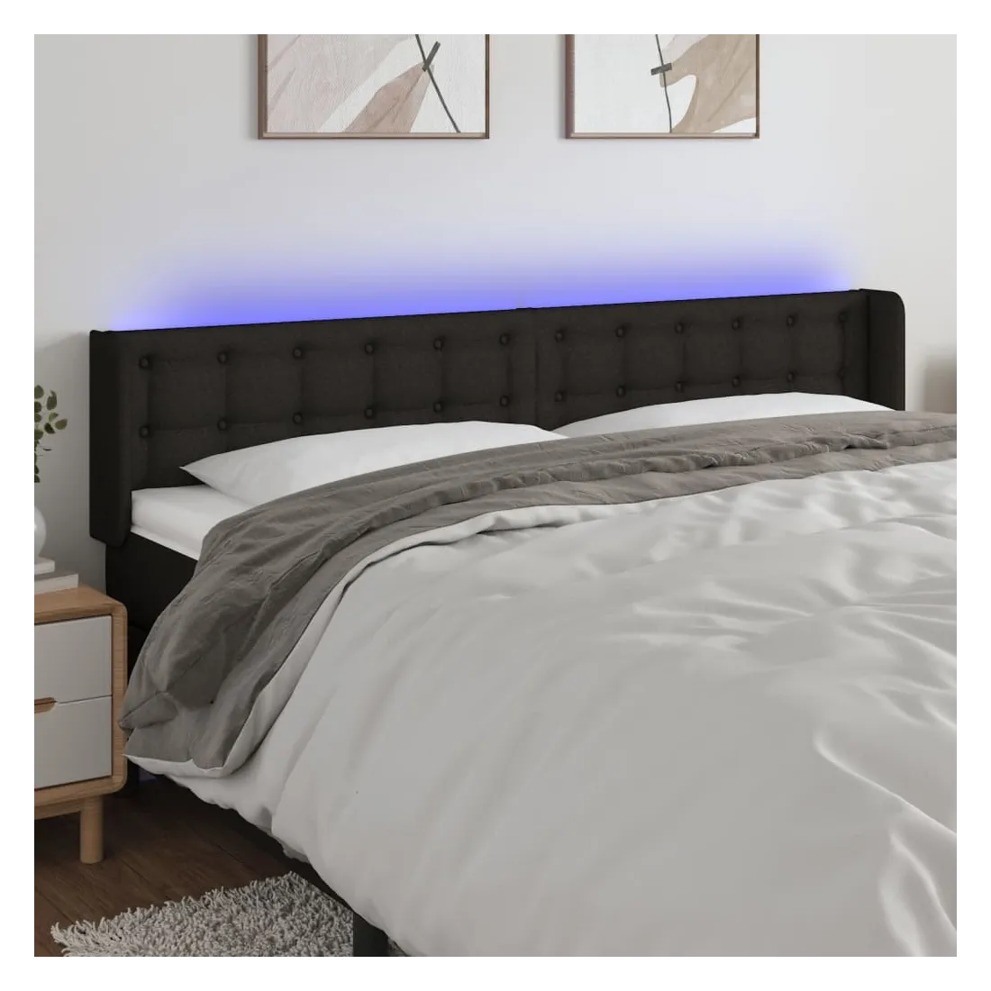 Tête de lit à LED Noir 203x16x78/88 cm Tissu