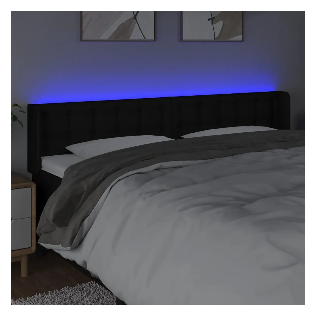Cette tête de lit à LED classique, au design élégant, donne à votre cadre de lit une touche de modernité étonnante et convient parfaitement à toute chambre à coucher. Tissu durable : le tissu présente un aspect simple et épuré, et il est respirant et durable.LED colorée : apportez de l'éclairage dans l'obscurité avec des lumières LED colorées !Hauteur réglable : la tête de lit est réglable en hauteur selon vos préférences.Excellent soutien : la tête de lit vous offre un excellent soutien du dos lorsque vous êtes assis dans votre lit pour lire ou regarder la télévision.Bande à LED découpable : cette bande à LED flexible peut être ajustée en longueur. Le symbole des ciseaux indique où la bande peut être coupée en toute sécurité sans l'endommager. Remarque :Seule la partie avec un symbole de ciseaux peut être coupée et seule la partie avec l'USB continuera à fonctionner comme avant.Chaque produit est livré avec un manuel de montage dans la boîte pour un montage facile.Ce produit est doté d'un connecteur USB, mais la source d'alimentation certifiée de USB 5V n'est pas incluse.