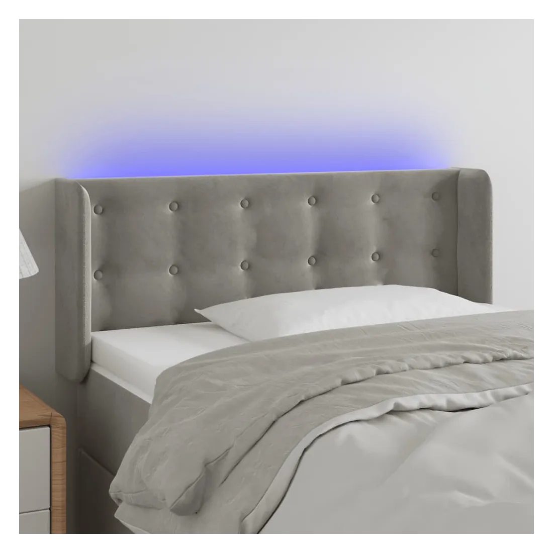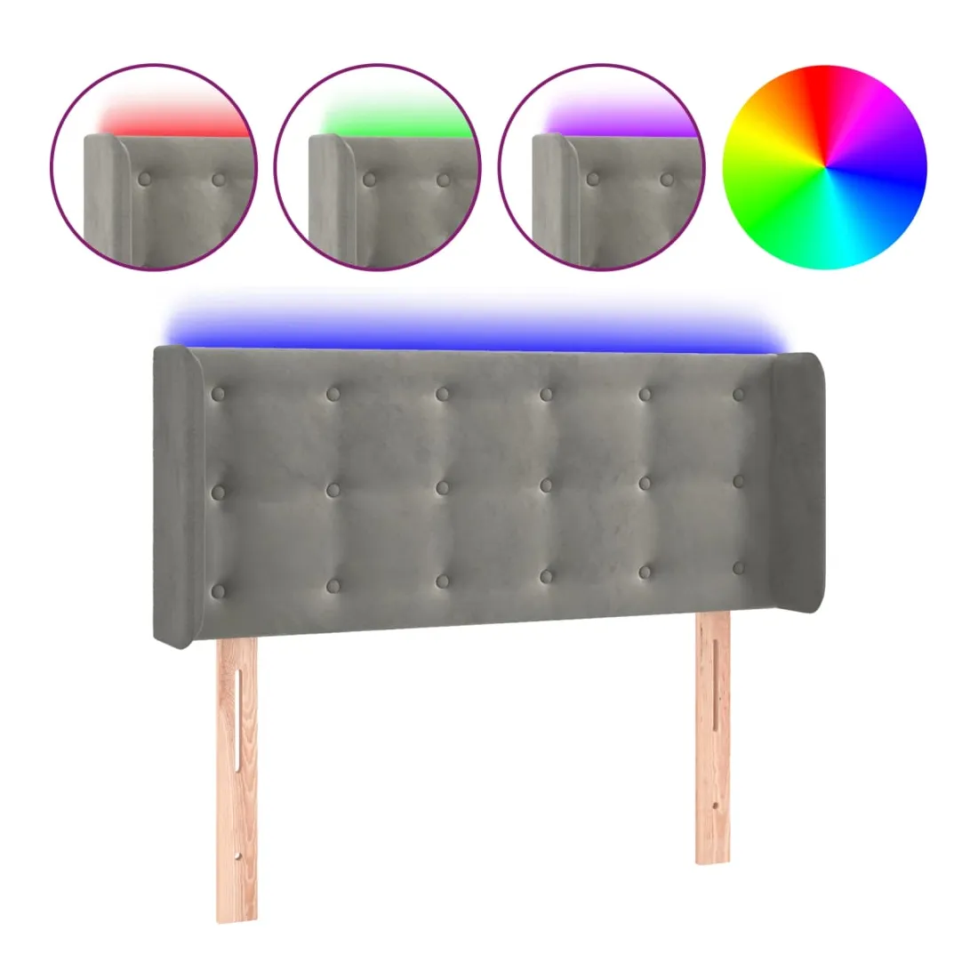 Cette tête de lit à LED classique, au design élégant, donne à votre cadre de lit une touche de modernité étonnante et convient parfaitement à toute chambre à coucher. Velours doux : le velours est un tissu doux et luxueux qui se reconnaît à son tas dense de fibres uniformément coupées qui ont une touche lisse. Le tissu en velours présente un toucher doux distinctif, ce qui le rend confortable au toucher.LED colorée : apportez de l'éclairage dans l'obscurité avec des lumières LED colorées !Hauteur réglable : la tête de lit est réglable en hauteur selon vos préférences.Excellent soutien : la tête de lit vous offre un excellent soutien du dos lorsque vous êtes assis dans votre lit pour lire ou regarder la télévision.Bande à LED découpable : cette bande à LED flexible peut être ajustée en longueur. Le symbole des ciseaux indique où la bande peut être coupée en toute sécurité sans l'endommager. Remarque :Seule la partie avec un symbole de ciseaux peut être coupée et seule la partie avec l'USB continuera à fonctionner comme avant.Chaque produit est livré avec un manuel de montage dans la boîte pour un montage facile.Ce produit est doté d'un connecteur USB, mais la source d'alimentation certifiée de USB 5V n'est pas incluse.