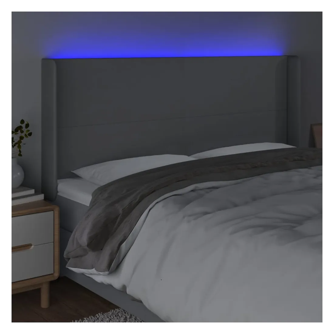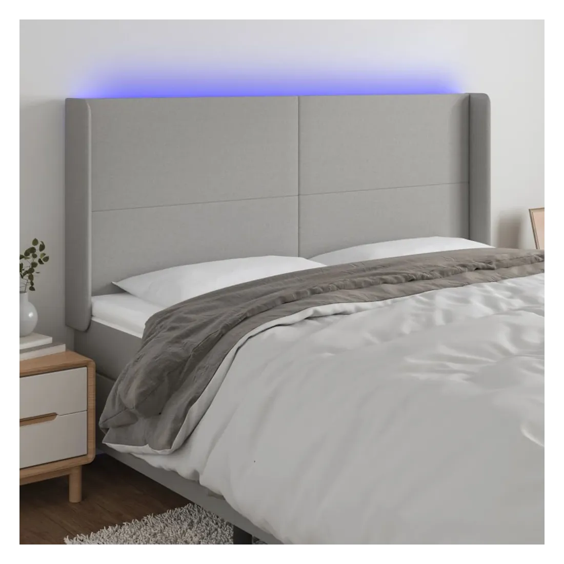 Cette tête de lit à LED classique, au design élégant, donne à votre cadre de lit une touche de modernité étonnante et convient parfaitement à toute chambre à coucher. Tissu durable : le tissu présente un aspect simple et épuré, et il est respirant et durable.LED colorée : apportez de l'éclairage dans l'obscurité avec des lumières LED colorées !Hauteur réglable : la tête de lit est réglable en hauteur selon vos préférences.Excellent soutien : la tête de lit vous offre un excellent soutien du dos lorsque vous êtes assis dans votre lit pour lire ou regarder la télévision.Bande à LED découpable : cette bande à LED flexible peut être ajustée en longueur. Le symbole des ciseaux indique où la bande peut être coupée en toute sécurité sans l'endommager. Remarque :Seule la partie avec un symbole de ciseaux peut être coupée et seule la partie avec l'USB continuera à fonctionner comme avant.Chaque produit est livré avec un manuel de montage dans la boîte pour un montage facile.Ce produit est doté d'un connecteur USB, mais la source d'alimentation certifiée de USB 5V n'est pas incluse.