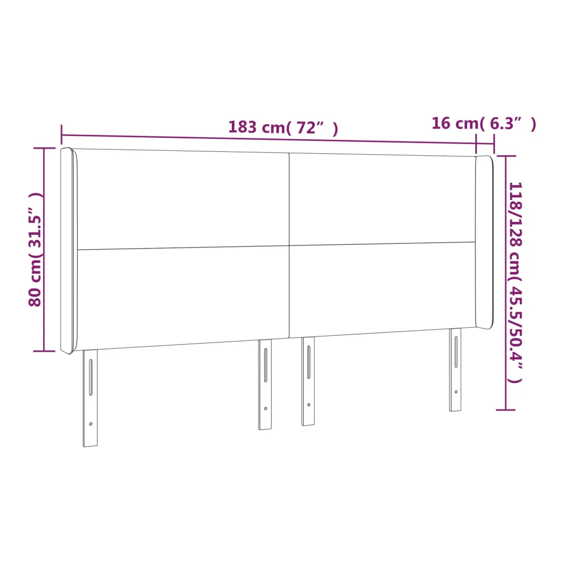 - 183 x 16 x 118/128 cm