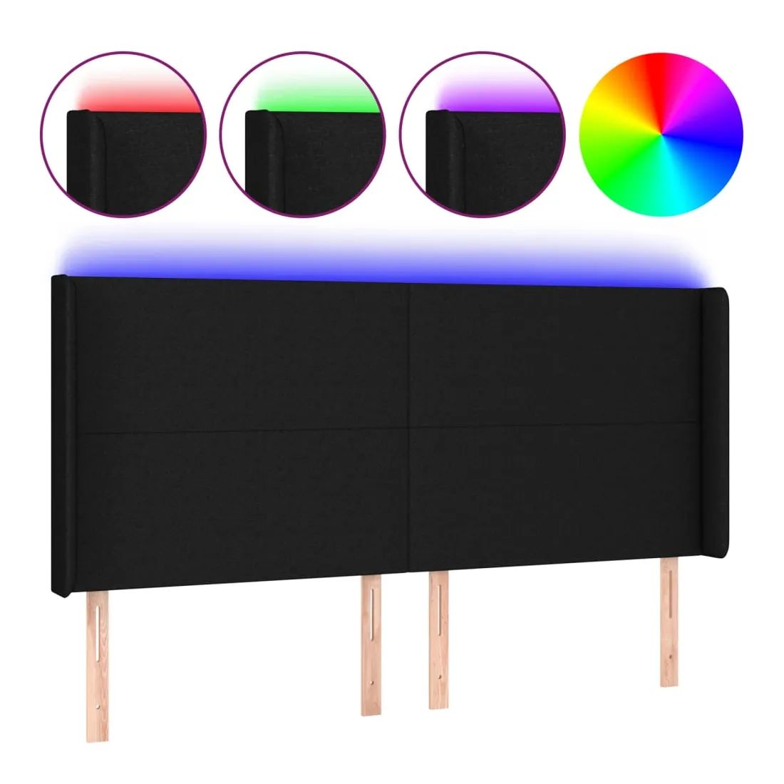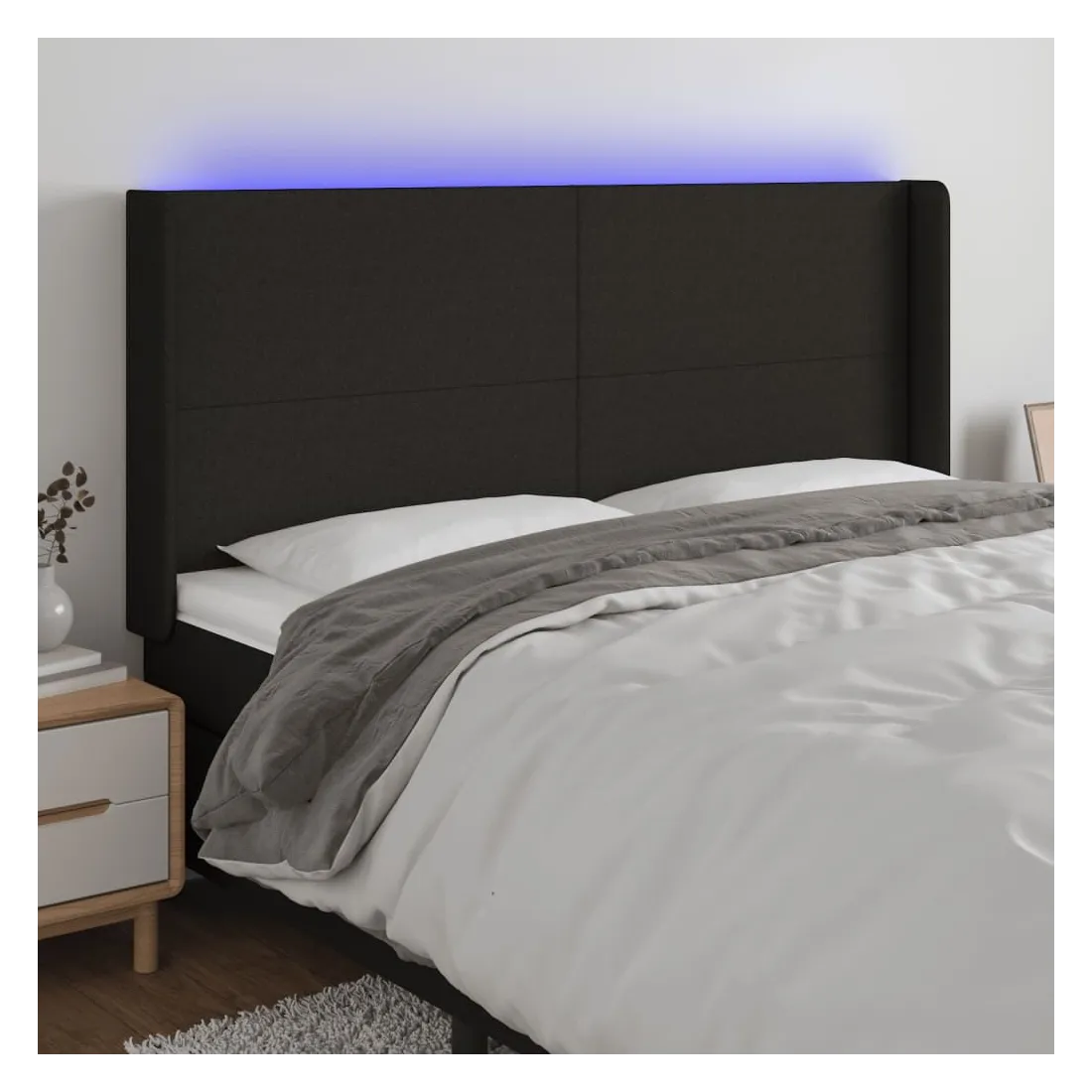 Tête de lit à LED Noir 183x16x118/128 cm Tissu
