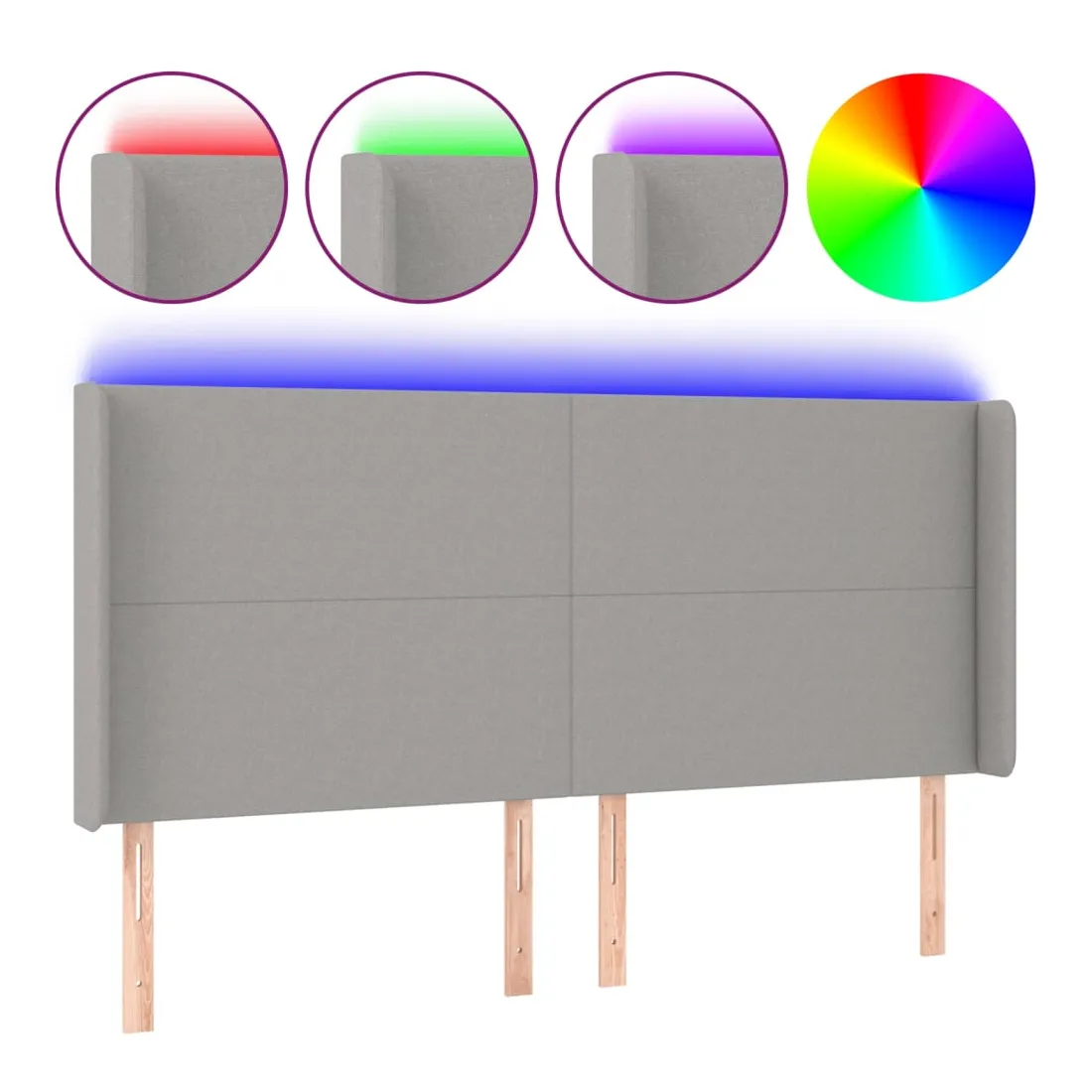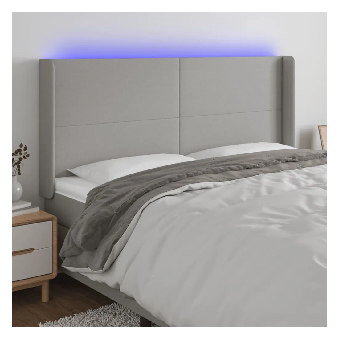 Tête de lit à LED Gris clair 203x16x118/128 cm Tissu